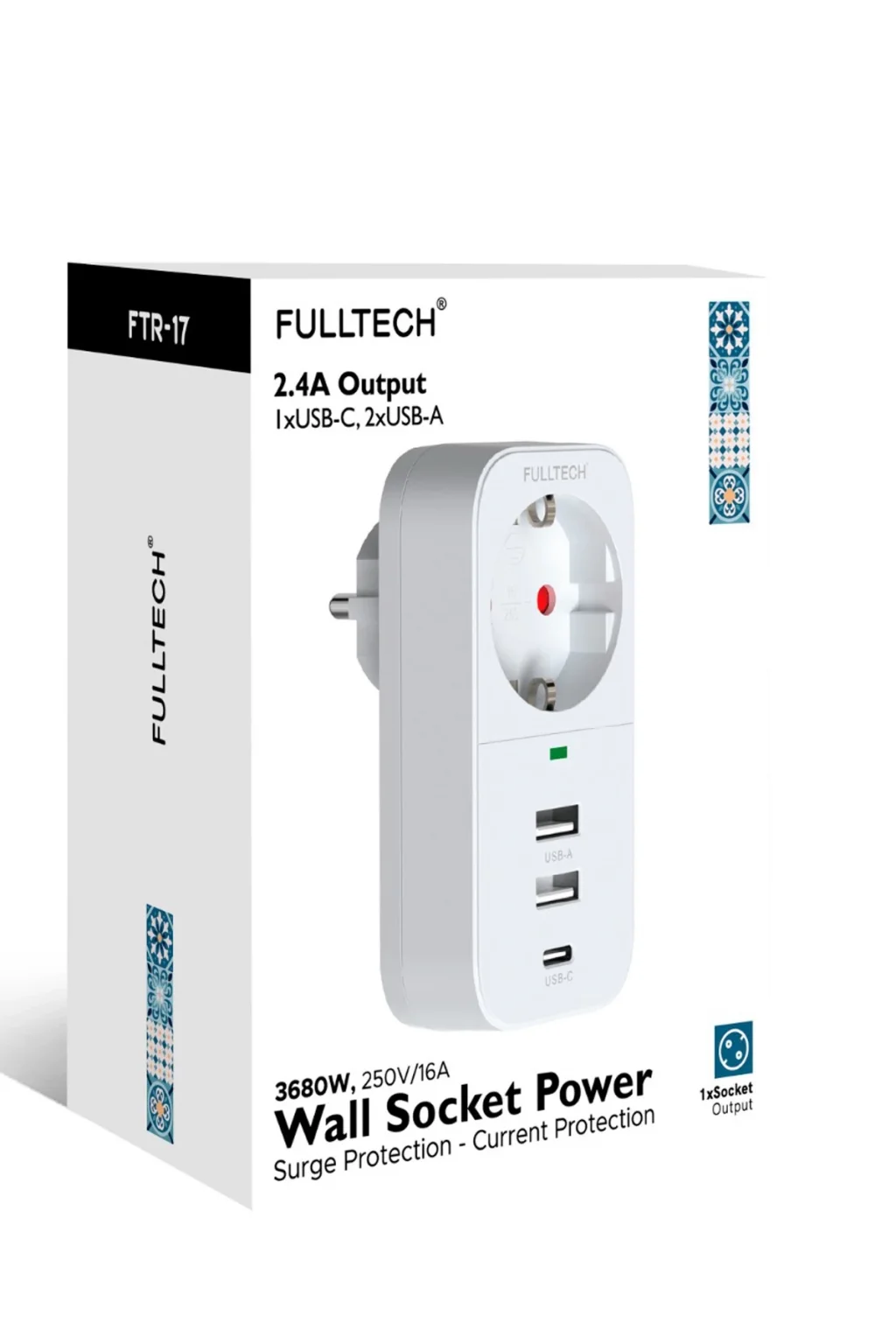 2.4a Çıkışlı 2xusb 1xtype-c Tekli Priz Ftr-17