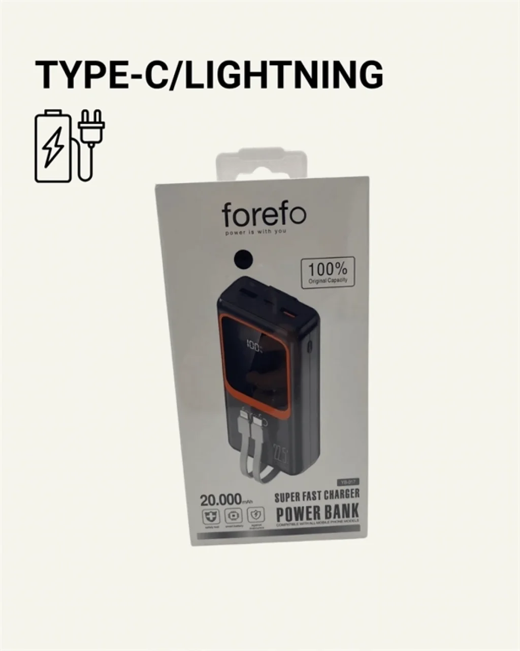 20.000 mAh Powerbank – 22.5W Hızlı Şarj, Çok Kablolu, Dijital Göstergeli