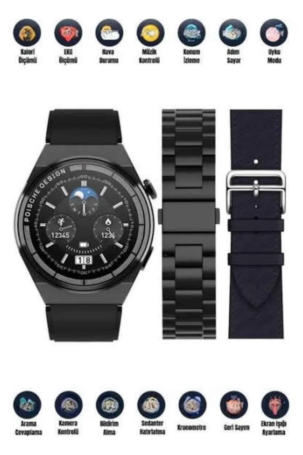 Akıllı saatin suya ve toza dayanıklılığı, her türlü hava koşulunda veya suya maruz kalınan ortamlarda güvenle kullanım imkanı sunar. Yağmurlu havalarda, ellerinizi yıkarken veya yoğun spor aktiviteleri sırasında saatinizin zarar görmesini dert etmeden kullanabilirsiniz. Uyku takibi fonksiyonu, gece boyunca uyku düzeninizi analiz ederek ne kadar kaliteli bir uyku uyuduğunuzu anlamanıza yardımcı olur. Bu sayede uyku alışkanlıklarınızı iyileştirebilir ve daha sağlıklı bir yaşam sürdürebilirsiniz. Teknolojiyi ve şıklığı bir araya getiren bu akıllı saat, hem günlük yaşamınızı kolaylaştıracak hem de stilinize modern bir dokunuş katacaktır!