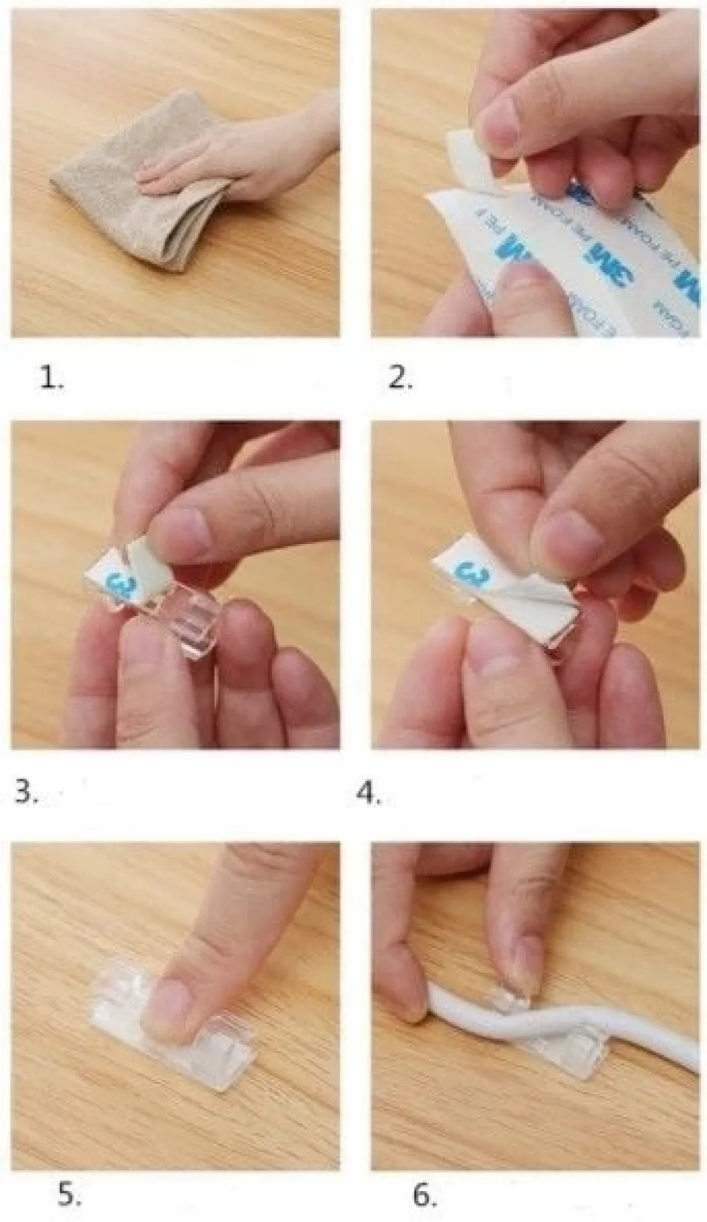 20'li Yapışkanlı Kablo Sabitleyici Şeffaf Klips
