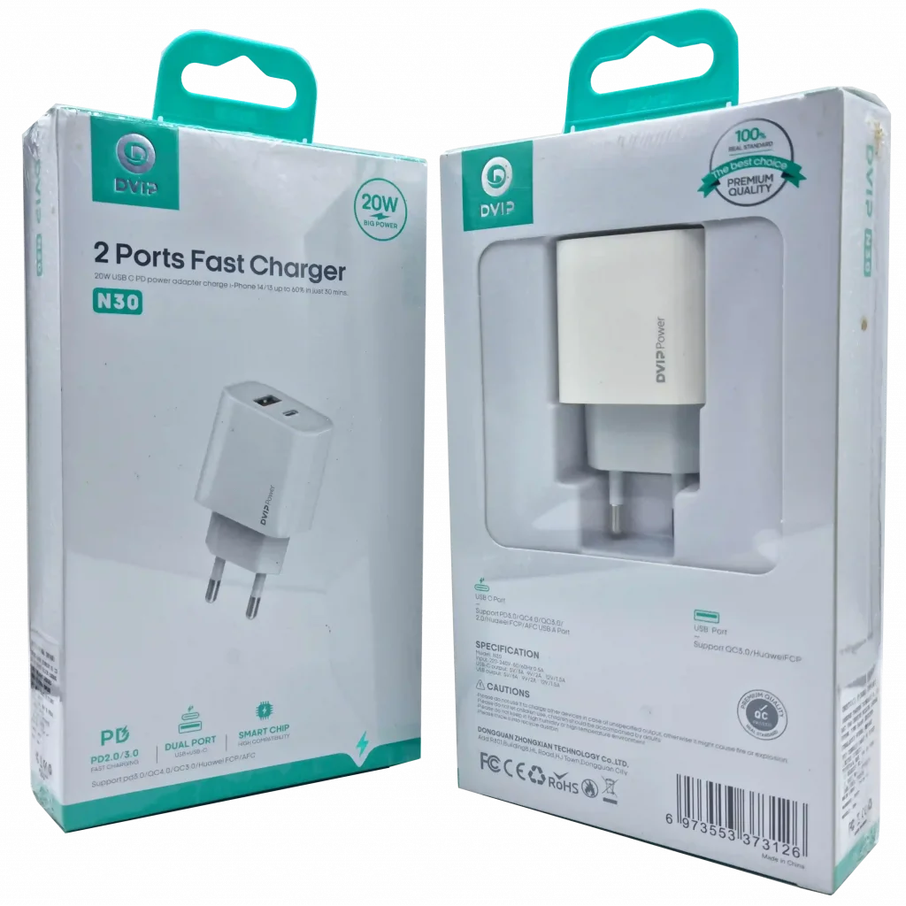 20W PD + Qc3.0 Usb Çift Girişli Şarj Başlığı DVIP N30