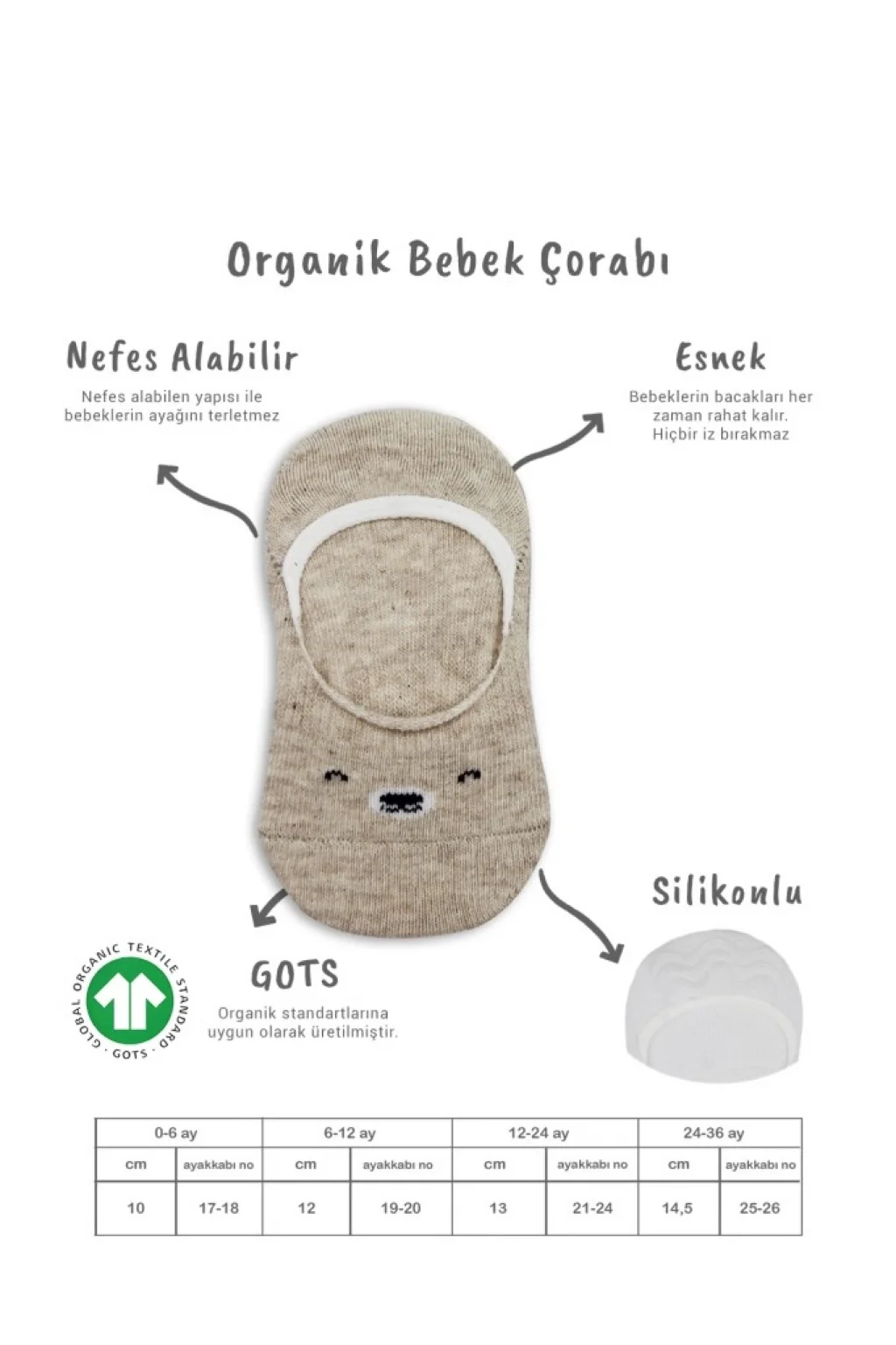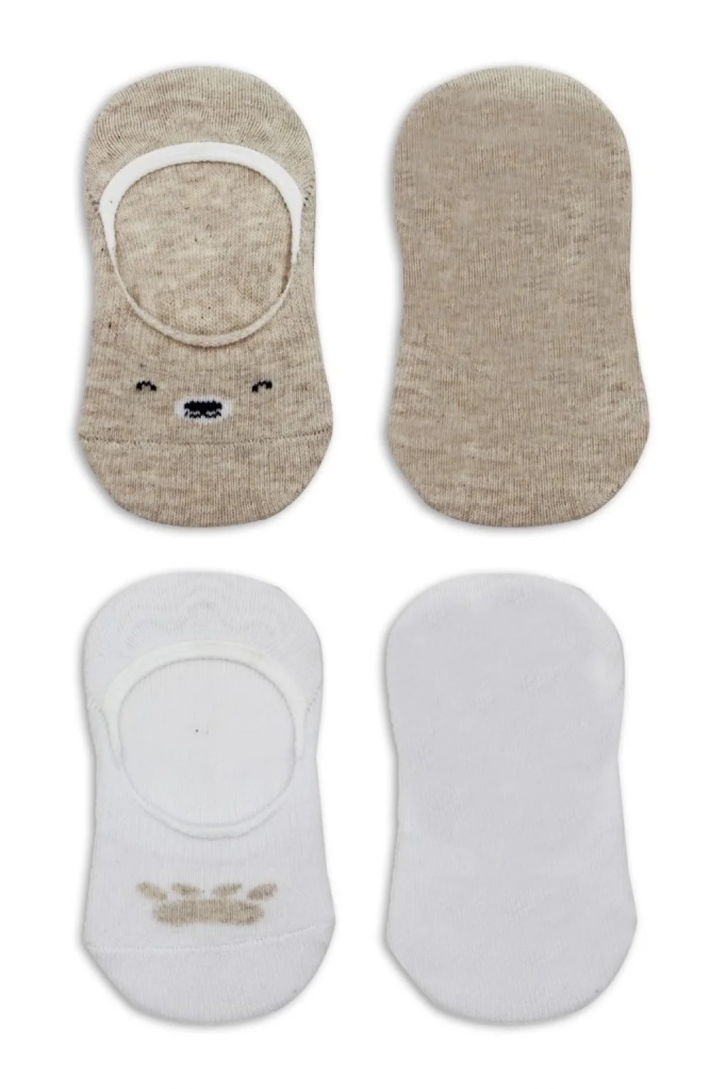 2'Li Babet Cute Face Penye Çorap 30103 Bej Beyaz