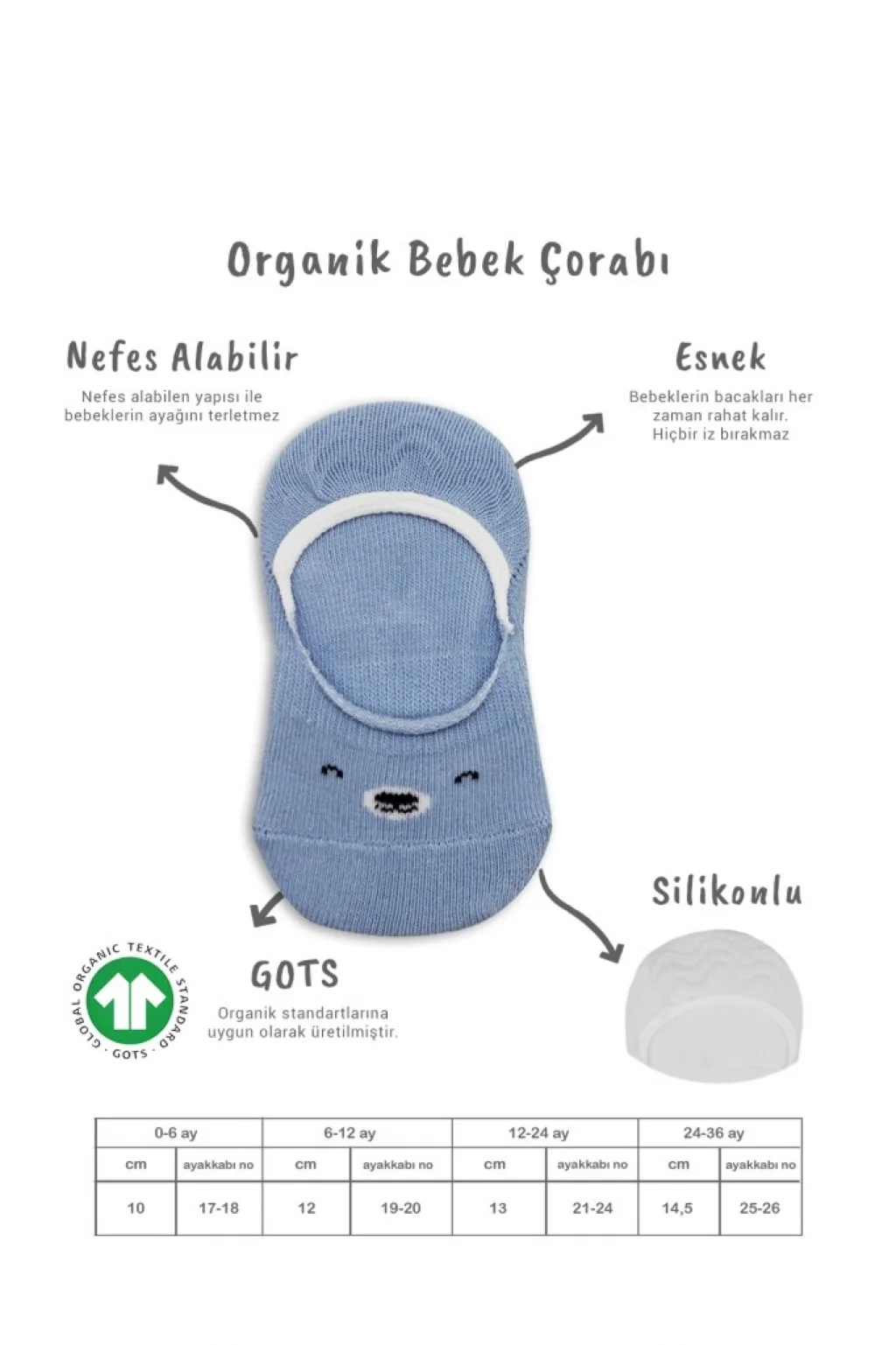2'Li Babet Cute Face Penye Çorap 30103 Mavi-Beyaz