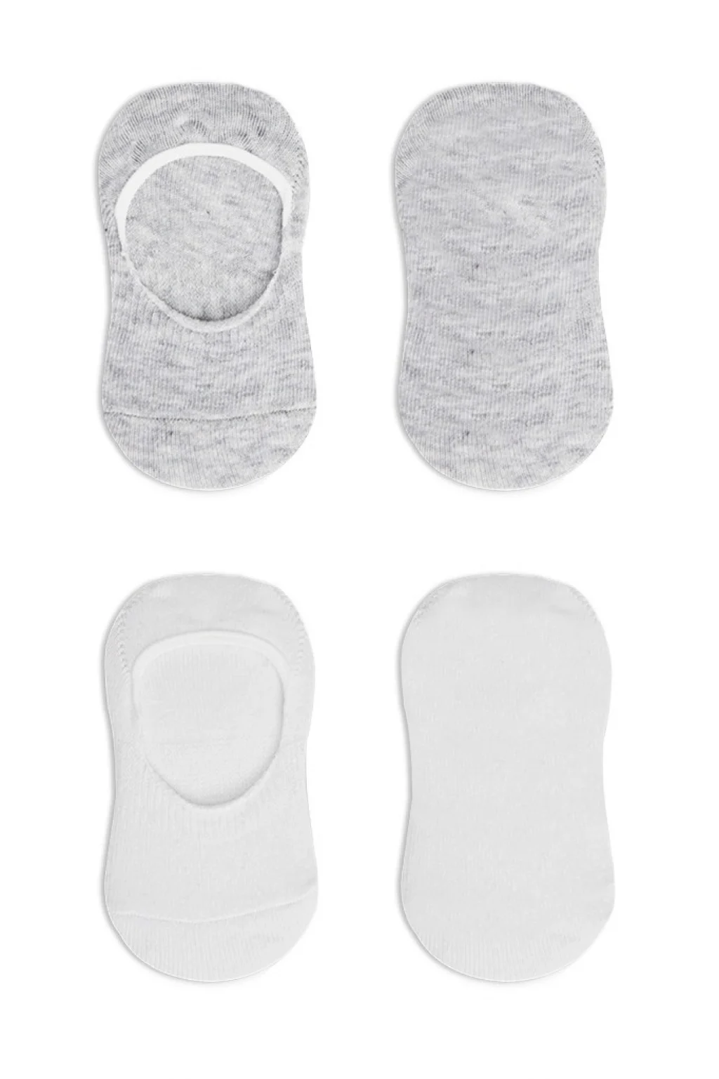 2'Li Penye Babet Silikonlu Basic Çorap 30104 Gri Beyaz