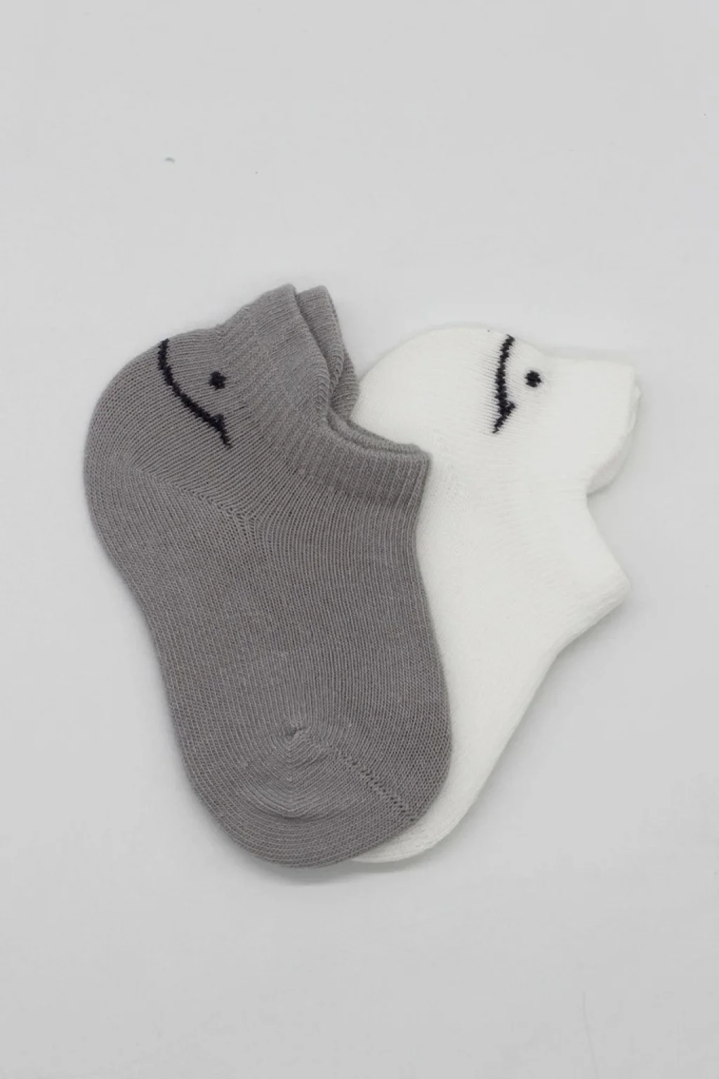 2'Li Sneakers Smile Penye Çorap 20106 Gri Ekru
