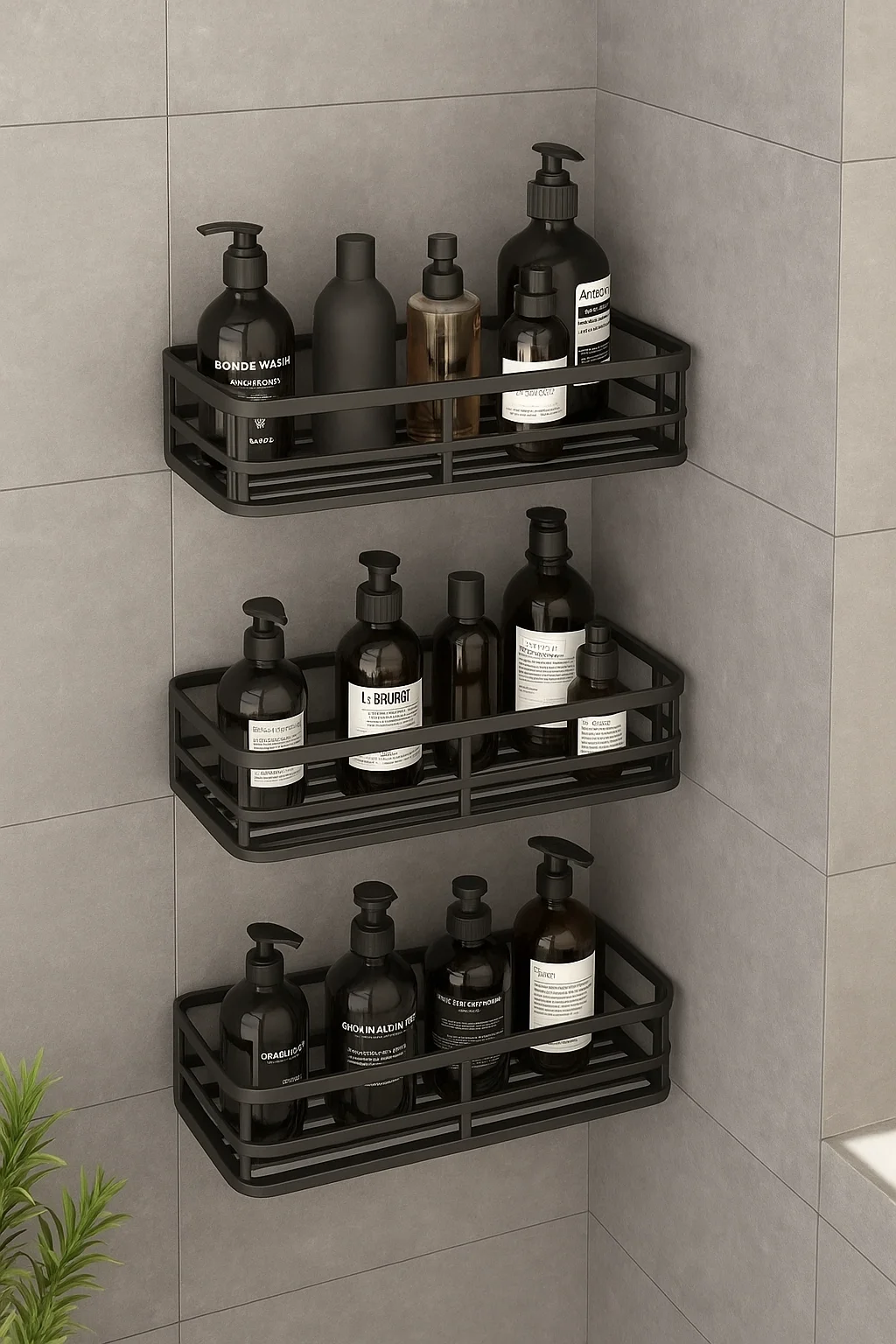 3 lü Banyo Düzenleyici Organizer Şampuanlık Havlupan Askısı Havluluk Siyah Banyo Duş Mutfak Rafı