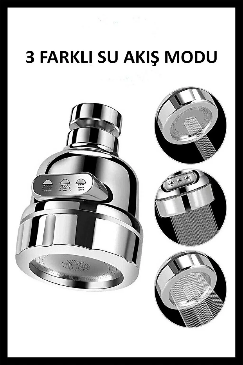 3 Modlu 360 Derece Döner Krom Musluk Başlığı Su Tasarruflu Mutfak Çeşme Evye ve Lavabo Batarya Ucu