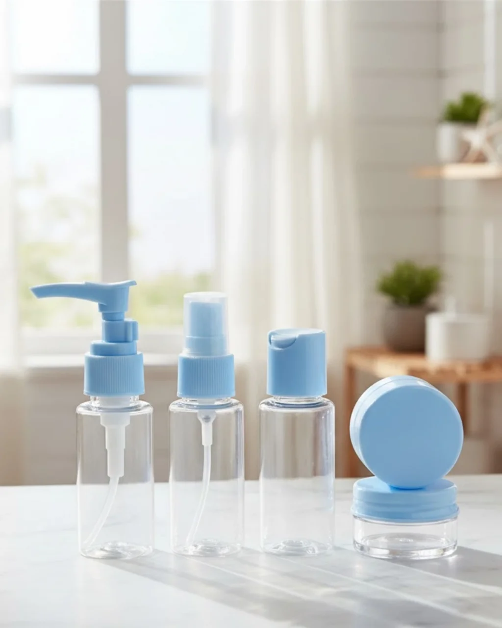30 ml 5’li Seyahat Boy Kozmetik Organizer Seti, kişisel bakım ürünlerini planlı ve düzenli taşımanızı sağlar. Küçük hacmi sayesinde valizinizde veya sırt çantanızda minimum yer kaplar.Farklı kap seçenekleri, bakım rutininizi eksiksiz sürdürmenize yardımcı olur. Şampuan, duş jeli, tonik, losyon ve krem gibi ürünler için ayrı alan sunar.Şeffaf gövde yapısı sayesinde içerik kontrolü kolaydır. Dayanıklı plastik materyal uzun ömürlü kullanım sunar.Sızdırmaz kapak sistemi ile güvenli taşıma sağlar. Spor, seyahat ve günlük kullanım için idealdir.