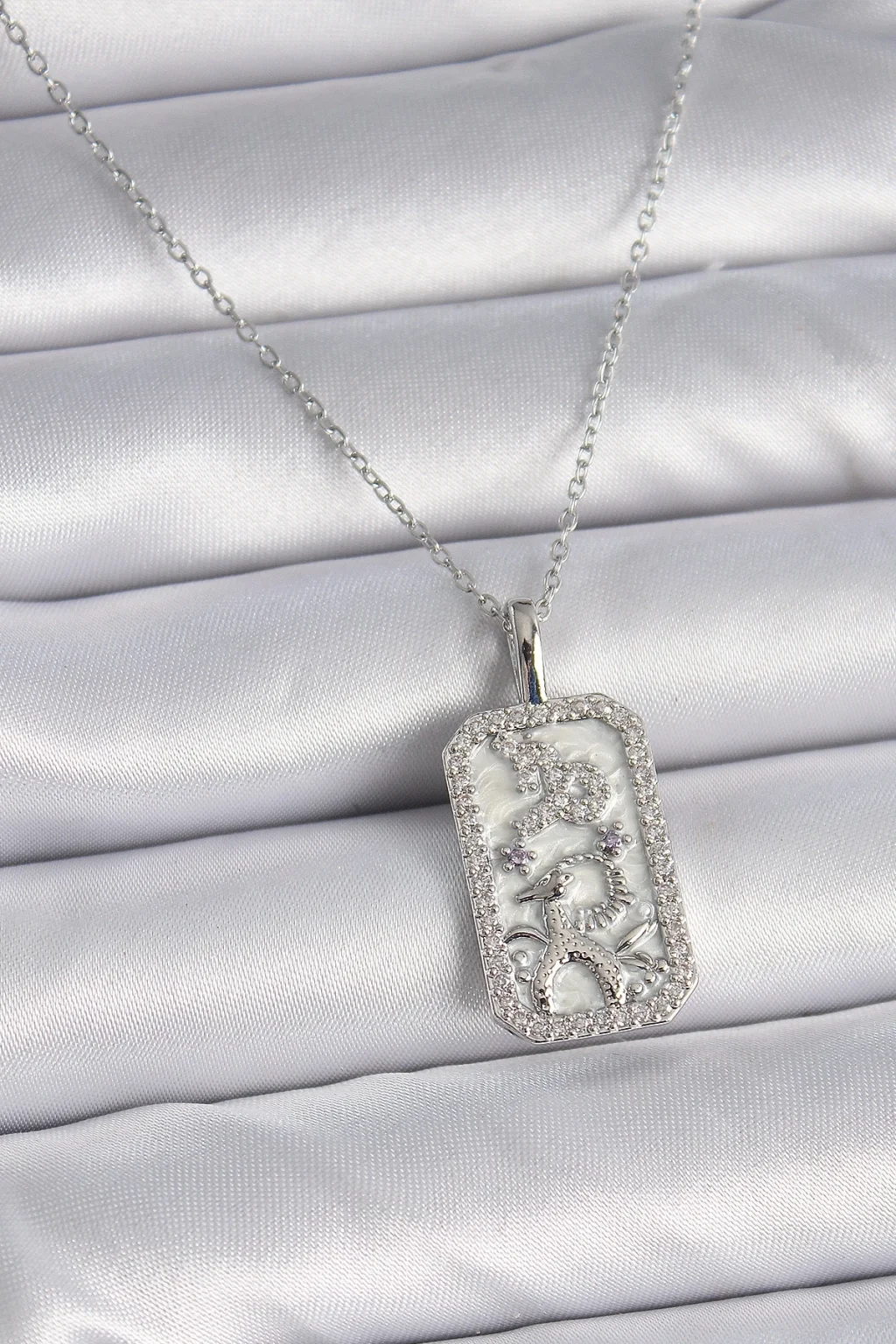 316L Çelik Gümüş Renk Zincir Oğlak Burcu Zirkon Taşlı Kadın Kolye