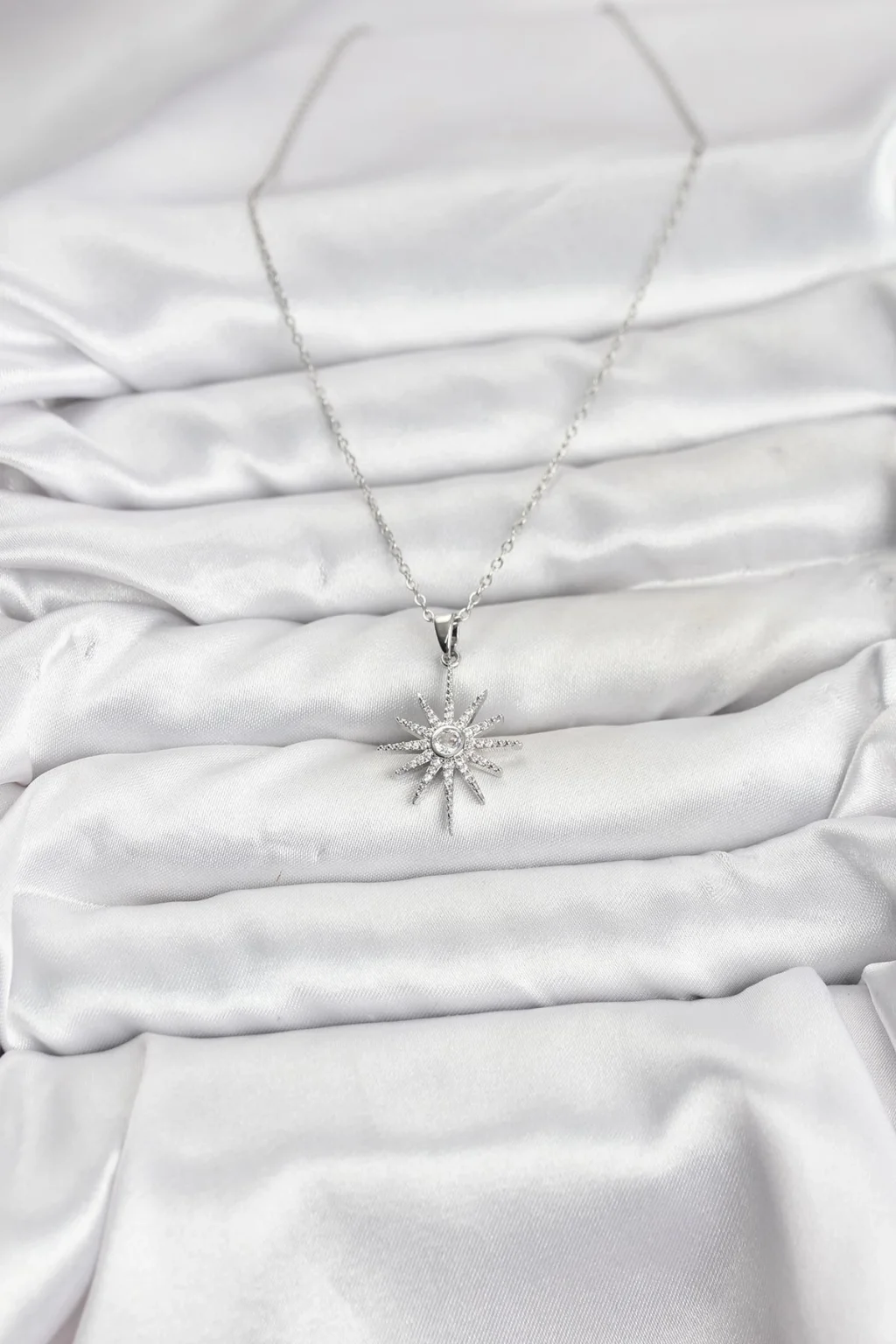 316L Çelik Zincir Gümüş Renk Kutup Yıldızı Model Zirkon Taşlı Kadın Kolye