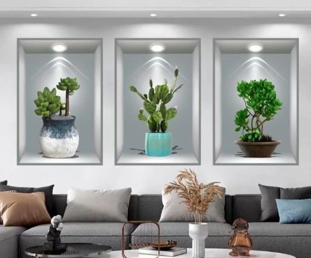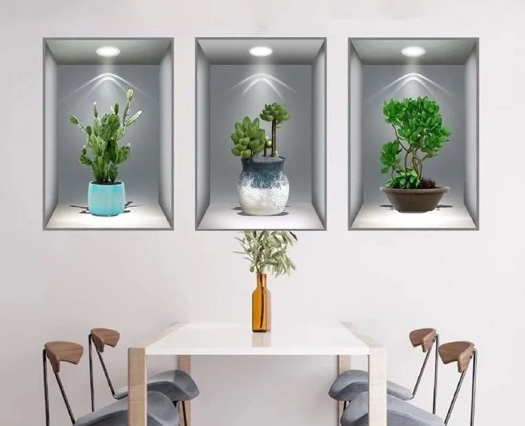 3D Çiçek Vazo Duvar Sticker 3 lü Set GRİ Fon