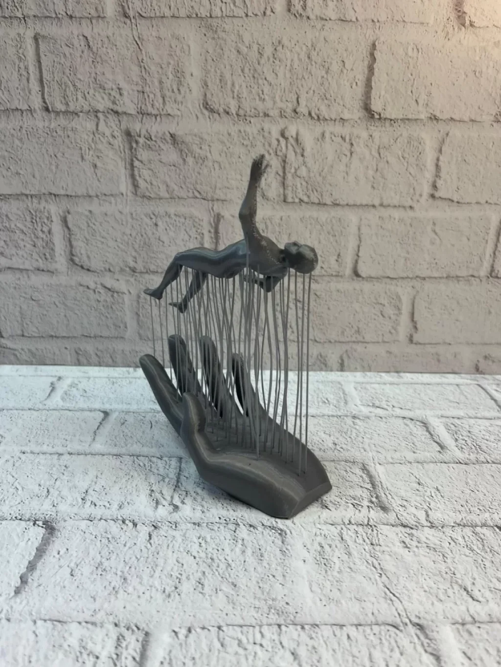 3D El Üzerinde İnsan Figürü Gri Minimal Masa Üstü Dekor