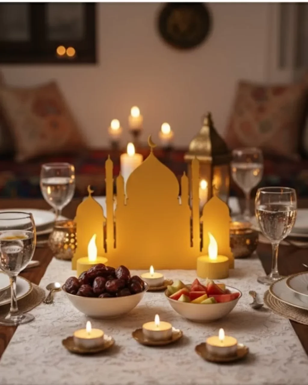 3D İki Mumlu Cami Dekor 2 Pilli LED Mum Hediyeli Masa Üstü Süs
