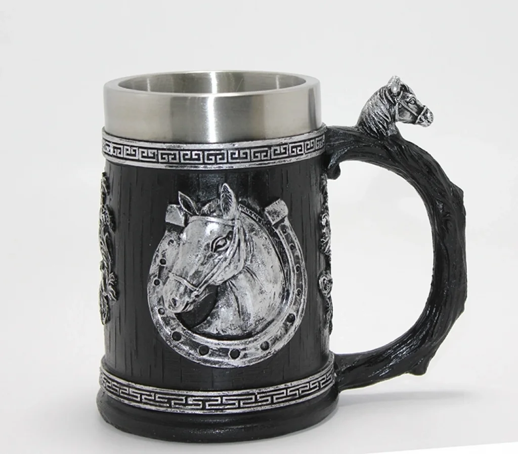 3D Kabartmalı At Büstü Paslanmaz Çelik Kupa Bardak