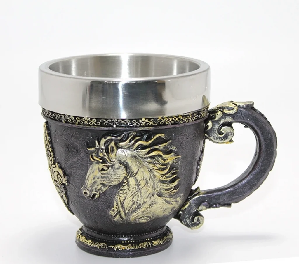 3d Kabartmalı At Büstü Paslanmaz Çelik Kupa Bardak Alk4478