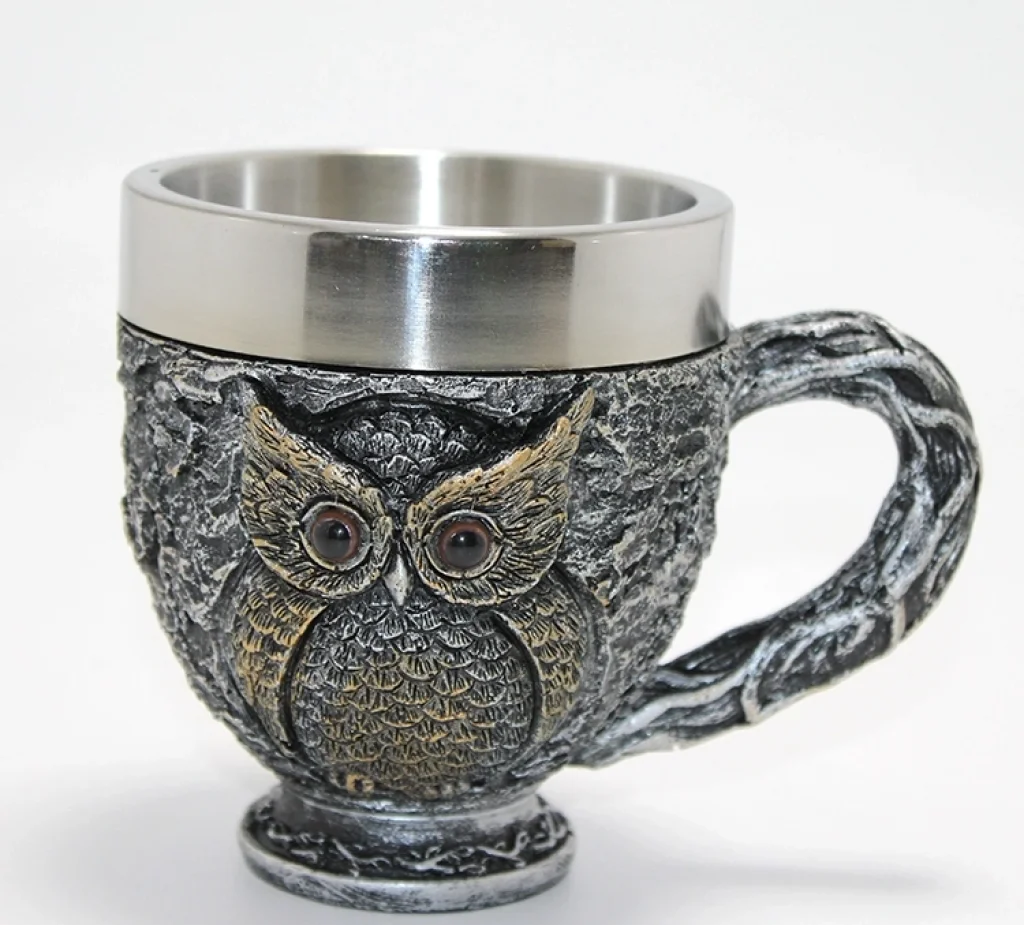 3D Kabartmalı Baykuş Büstü Paslanmaz Çelik Kupa Bardak