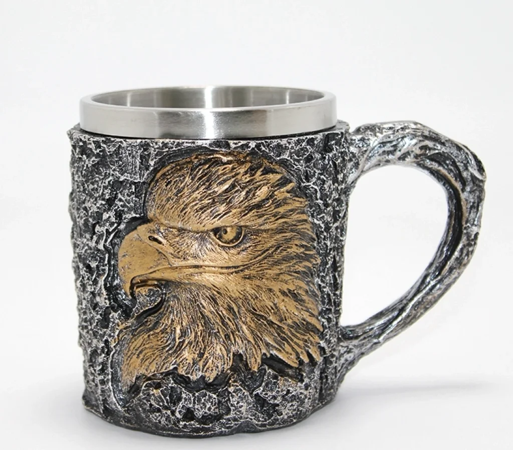 3D Kabartmalı Kartal Büstü Paslanmaz Çelik Kupa Bardak