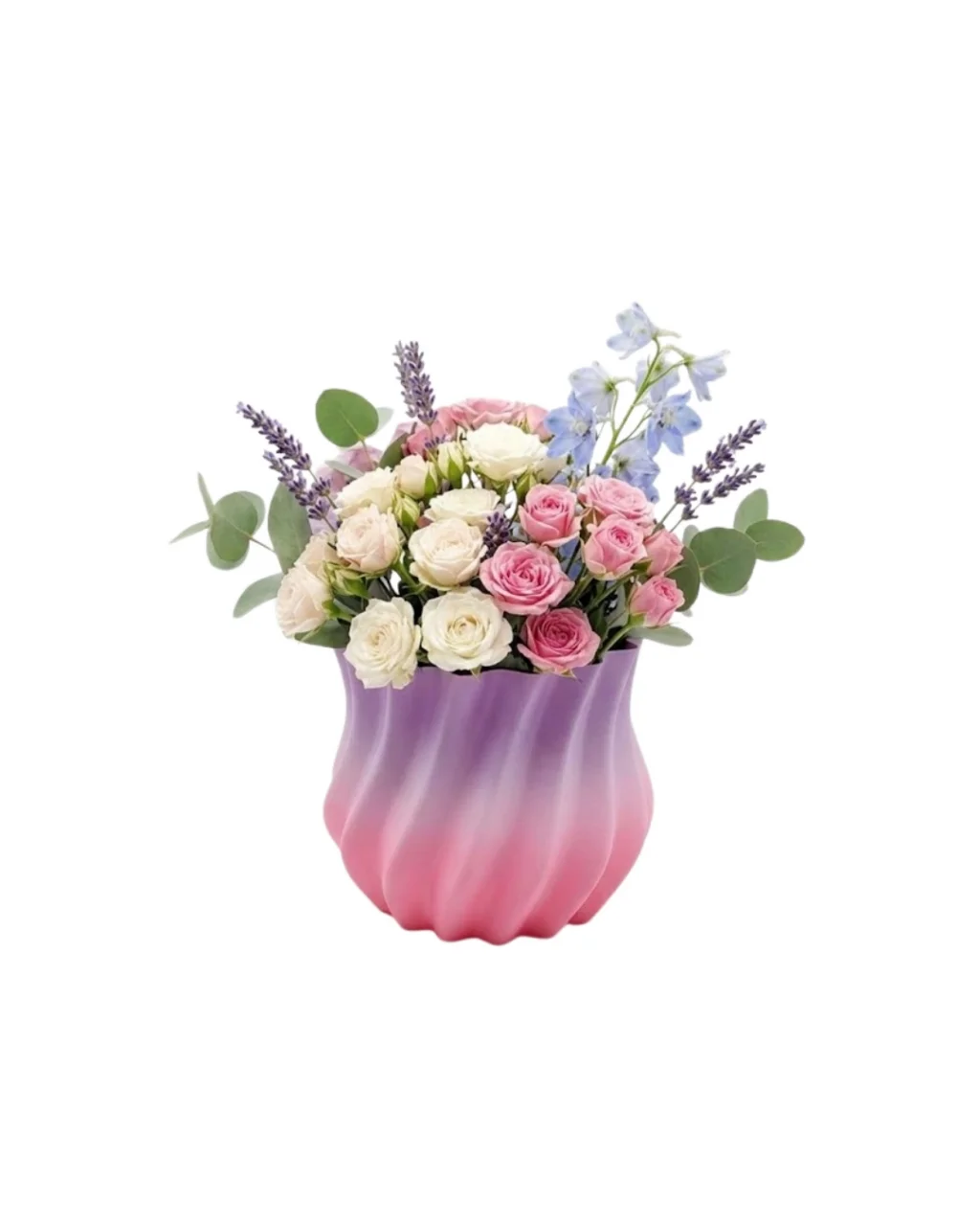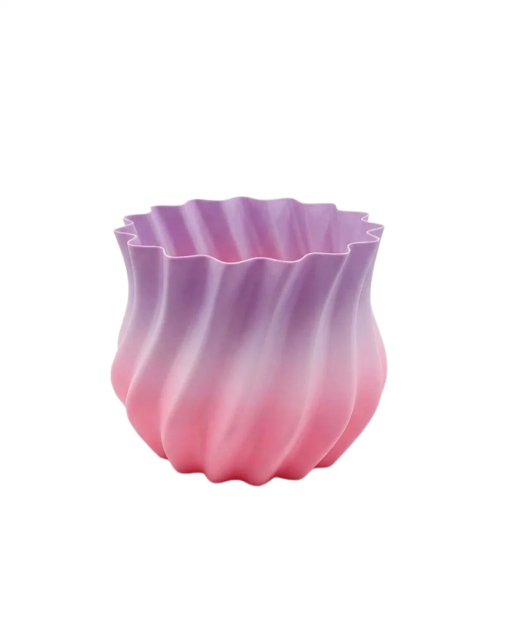 MoYaşam alanlarınıza zarif ve modern bir dokunuş katmak isteyenler için tasarlanan 3D kıvrımlı pembe lila vazo, özgün formu ve estetik renk geçişi ile dikkat çeken dekoratif bir üründür. Dalgalı ve akışkan yapısı sayesinde bulunduğu ortama hareket kazandırır ve sıradan dekorasyon anlayışının dışına çıkar.Pembe ve lila tonlarının uyumu, özellikle sade dekorasyonlarda güçlü bir vurgu oluşturarak mekâna canlılık katar. Bu renk kombinasyonu, hem romantik hem de modern bir atmosfer yaratır. Minimal ve feminen dekorasyon tarzlarını tamamlayan güçlü bir parçadır.Kompakt yapısı sayesinde evinizin birçok farklı alanında rahatlıkla kullanılabilir. Salon, yatak odası, çalışma alanı veya ofis dekorasyonunda estetik bir tamamlayıcı olarak tercih edilebilir. Hafif yapısı sayesinde kolay taşınabilir ve farklı dekorasyon düzenlerine uyum sağlar.Ürünün kaliteli üretim yapısı, uzun süreli kullanım imkanı sunar. Kıvrımlı yüzey detayları, ürüne sanatsal bir görünüm kazandırırken aynı zamanda ışıkla etkileşime girerek farklı görsel efektler oluşturur. Bu sayede bulunduğu ortamda dikkat çekici ve şık bir atmosfer yaratır.Bu vazo sadece dekoratif bir obje değil, aynı zamanda hediye olarak da oldukça anlamlı bir seçenektir. Doğum günü, yeni ev hediyesi veya özel günlerde tercih edilebilecek zarif ve estetik bir üründür.