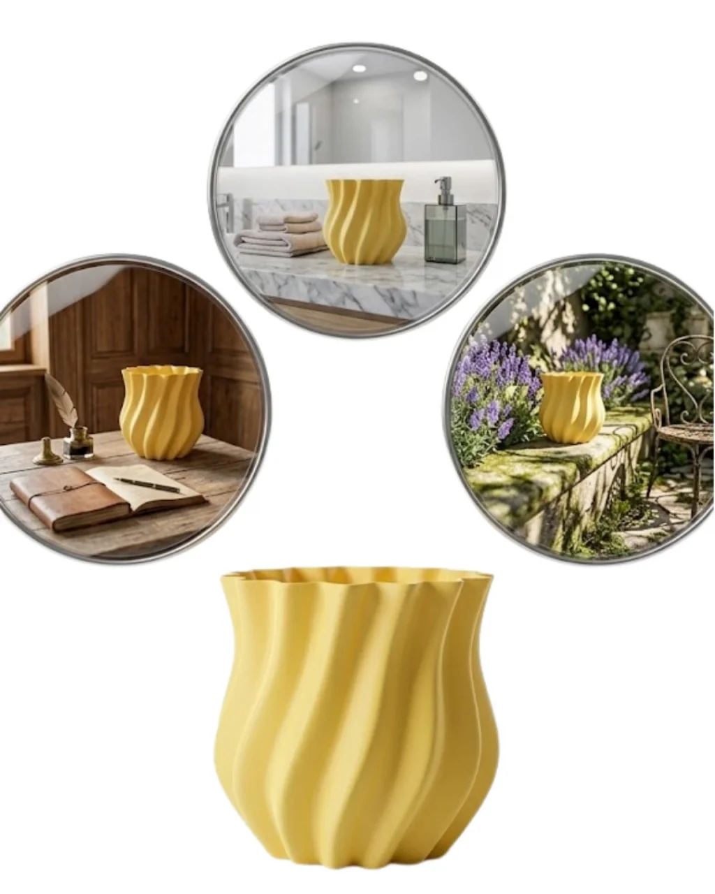 Yaşam alanlarınıza modern ve enerjik bir dokunuş katmak isteyenler için tasarlanan 3D kıvrımlı sarı vazo, özgün tasarımı ve dikkat çekici rengi ile öne çıkan dekoratif bir üründür. Dalgalı ve akışkan yapısı sayesinde bulunduğu ortama hareket kazandırır ve estetik bir bütünlük oluşturur. Sarı rengin canlı ve pozitif etkisi, özellikle sade dekorasyonlarda güçlü bir vurgu yaratır.Kompakt ve kullanışlı yapısı sayesinde evinizin birçok farklı alanında rahatlıkla kullanılabilir. Salon, yatak odası, mutfak, çalışma alanı veya ofis dekorasyonunda şık bir tamamlayıcı olarak tercih edilebilir. Hafif yapısı sayesinde kolay taşınabilir ve farklı dekorasyon düzenlerine uyum sağlar.Ürünün kaliteli üretim yapısı, uzun süreli kullanım imkanı sunar. Kıvrımlı yüzey detayları, ürüne sanatsal bir görünüm kazandırırken aynı zamanda ışıkla etkileşime girerek farklı görsel etkiler oluşturur. Bu sayede bulunduğu ortamda sıradanlıktan uzak, dikkat çekici bir atmosfer yaratır.Sadece çiçeklerle değil, tek başına dekoratif obje olarak da kullanılabilir. Özellikle modern yaşam alanlarında estetik ve minimal bir görünüm oluşturmak isteyenler için ideal bir tercihtir. Aynı zamanda hediye olarak da değerlendirilebilecek şık ve kullanışlı bir üründür.