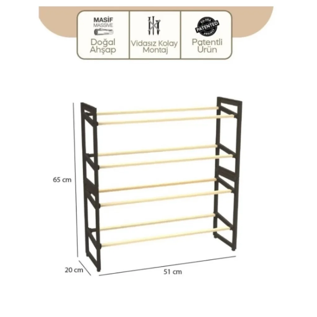 4 Katlı Ahşap Ayakkabılık