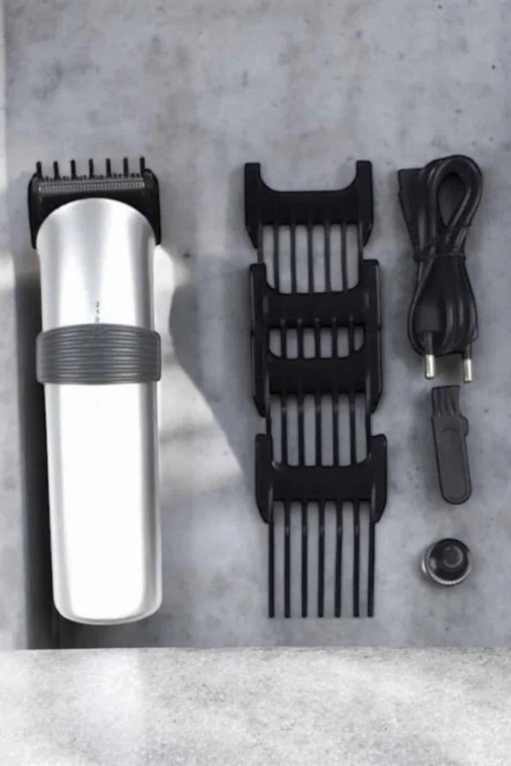Bu profesyonel şarjlı saç ve sakal kesme tıraş makinesi, kişisel bakımınızı pratik ve rahat bir şekilde gerçekleştirmenizi sağlar. Hem evde hem de kuaför salonlarında kullanılabilen bu cihaz, yüksek performanslı motoru ve dayanıklı paslanmaz çelik bıçakları ile mükemmel sonuçlar sunar. İster kısa sakal modelleri oluşturun, ister saçınızı şekillendirin, bu cihaz her kullanımda kusursuz bir deneyim sunar.Pratik ve Hızlı Kullanım:Saç ve sakal kesme işlemlerini hızlandıran bu cihaz, zaman kısıtlamalarınızda dahi rahatlıkla kullanabileceğiniz bir üründür. Çeşitli başlıklarla, saç kesimi, sakal şekillendirme, bıyık düzeltme gibi tüm işlemleri kolayca yapabilirsiniz. 5 farklı kesim tarağı ile her tarzı yakalayabilir ve dilediğiniz uzunluğu ayarlayabilirsiniz. Şarj edilebilir özelliği sayesinde kablosuz kullanım imkanı sunar, bu da cihazın daha pratik ve özgürce kullanılmasını sağlar.Ergonomik Tasarım ve Konfor:Cihazın ergonomik tasarımı, uzun süreli kullanımlarda bile elinize rahatça oturur ve kaymaz. Tıraş sırasında cihazın kolayca kontrol edilebilmesi, rahat bir kullanım sağlar. Ayrıca, makinenin sessiz çalışması, tıraş işlemi sırasında sizi rahatsız etmez. Güç düğmesi, başlık değiştirme ve kullanım kolaylığı ile en zahmetsiz tıraş deneyimini sunar. Kablosuz kullanım imkanı sayesinde, istediğiniz yerde rahatça tıraş olabilirsiniz.Uzun Ömürlü Performans ve Dayanıklılık:Paslanmaz çelik bıçaklar, her tür saç ve sakalı çekmeden, asılmadan keser. Güçlü motoru, yoğun sakalların kesilmesinde bile mükemmel performans sergiler. Yüksek kapasiteye sahip batarya, hızlı şarj olma süresi ile her zaman verimli çalışır ve 1 saatlik şarj ile 60 dakika boyunca kullanılabilir. Bu, cihazın her kullanımda yüksek performans sergilemesini sağlar ve tıraş sırasında size kesintisiz bir deneyim sunar.Paket İçeriği: 1 Adet Şarjlı Tıraş Makinesi 5 Adet Kesim Tarağı (Farklı uzunluk seçenekleri) 1 Adet Temizleme Fırçası 1 Adet Yağ Şişesi 1 Adet Şarj Adaptörü