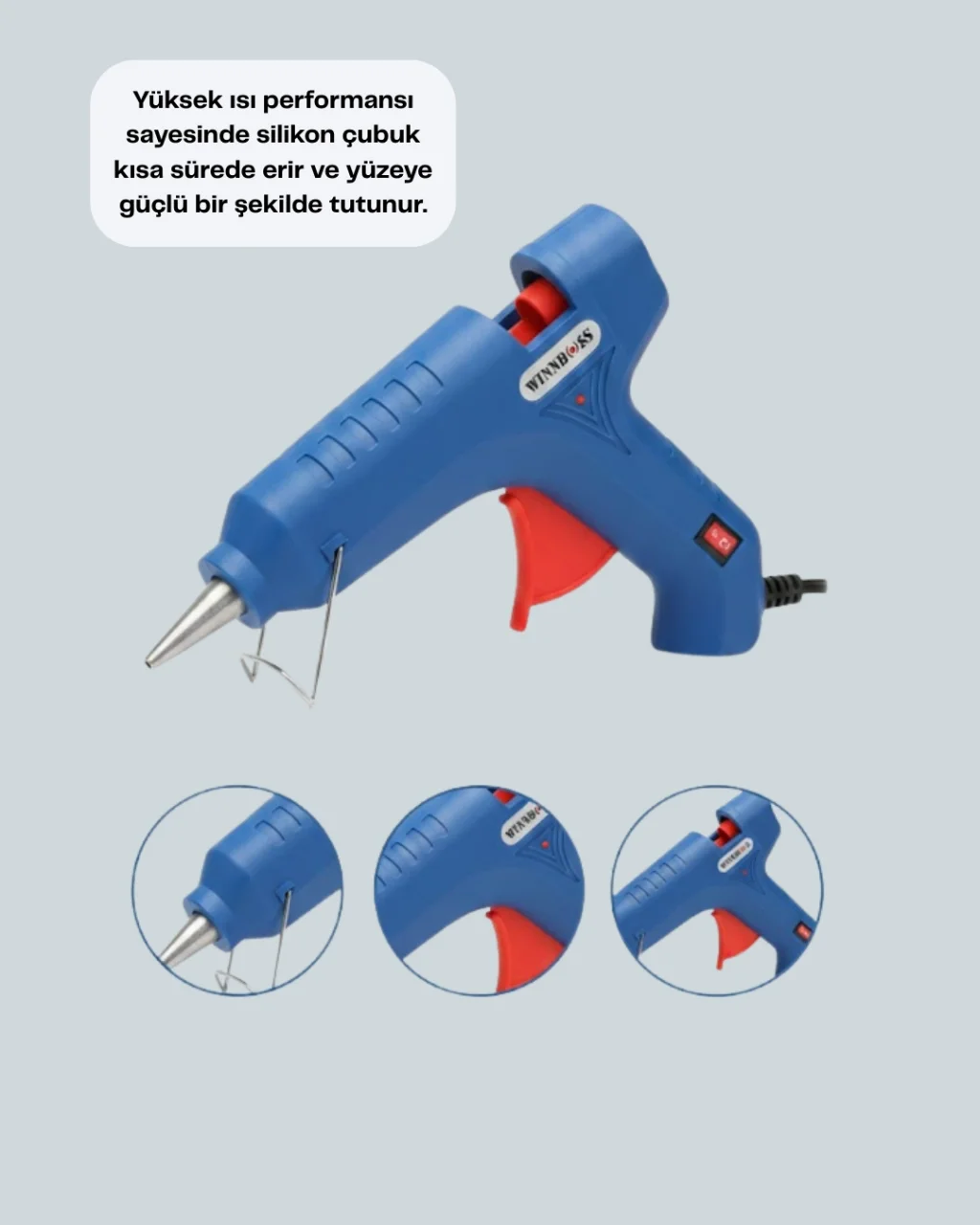 5 silikon hediyeli 40W sıcak silikon tabancası, ev ve hobi kullanımında vazgeçilmez bir yardımcıdır. Güçlü 40W motoru sayesinde silikon çubukları hızlıca eriterek zaman kazandırır. Paket içeriğinde yer alan 5 adet silikon, ürünü kullanıma hazır hale getirir.Ergonomik tasarımı sayesinde rahat kavrama sağlar ve uzun süreli çalışmalarda bile konfor sunar. Metal uç yapısı, düzgün ve temiz yapıştırmalar elde etmenizi sağlar.Sıcak silikon tabancası; tamirat, süsleme, el işi ve hobi projelerinde geniş kullanım alanına sahiptir. Çeşitli yüzeylerle uyumlu yapısı sayesinde çok yönlü kullanım imkânı sunar. Ev ortamında güvenle kullanılabilir.Isıya dayanıklı dış kasa, güvenli kullanım sağlar. Açma kapama düğmesi ile kontrol tamamen kullanıcıya aittir. Kompakt yapısı sayesinde kolay taşınır ve saklanır.5 silikon hediyeli bu sıcak silikon tabancası, pratikliği ve kullanım kolaylığı ile günlük işlerinizi zahmetsiz hale getirir.