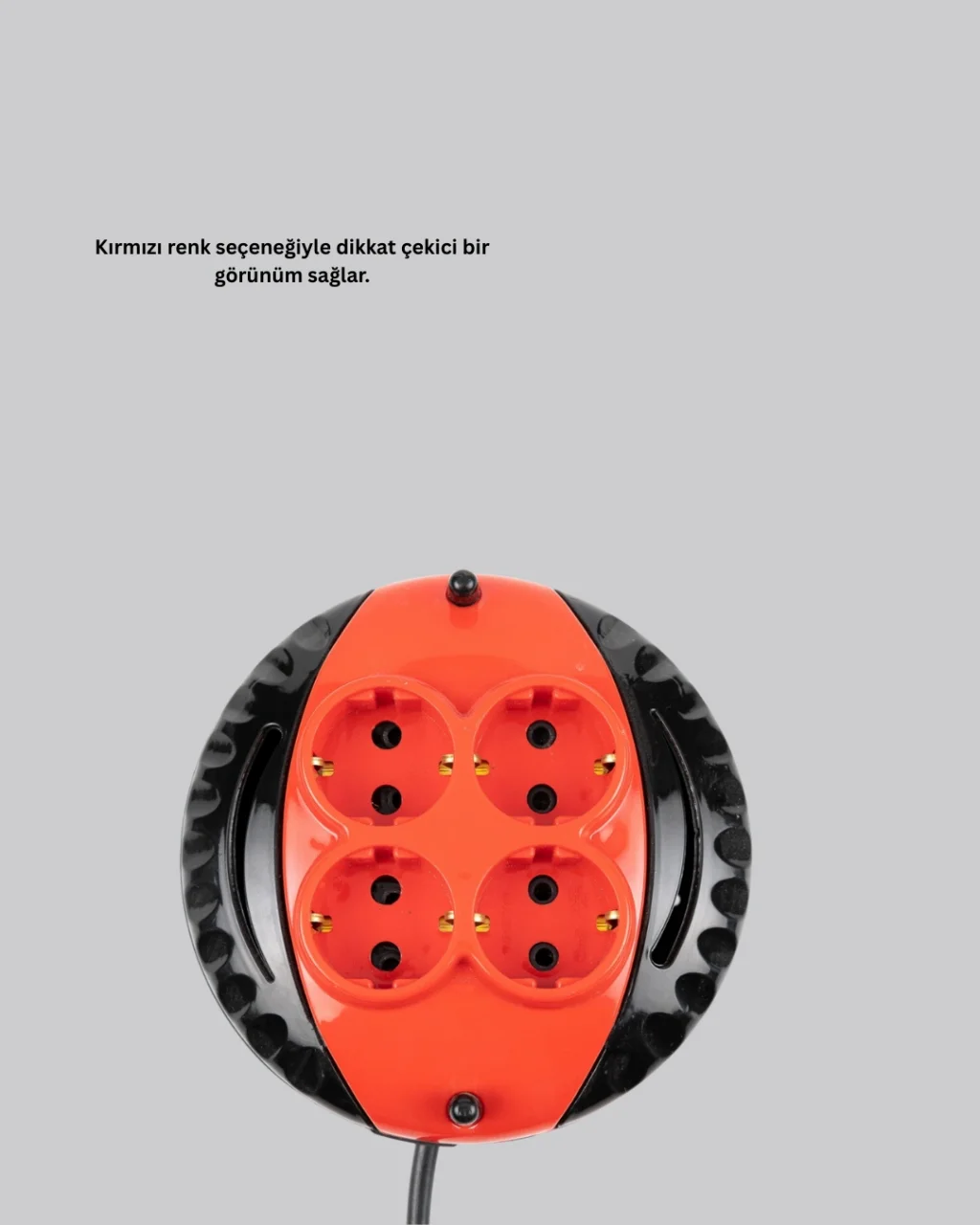 5 Metre Uzatma Kablolu 4 Prizli Makara Kırmızı