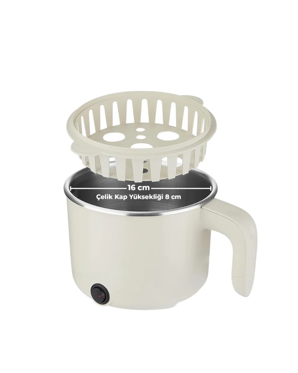 Pratik ve hızlı yemek hazırlamak isteyenler için tasarlanan çok amaçlı elektrikli pişirici, mutfakta zamandan tasarruf etmenizi sağlayan kullanışlı bir mutfak yardımcısıdır. Kompakt tasarımı sayesinde mutfakta fazla yer kaplamaz ve günlük yemek hazırlıklarını oldukça kolay hale getirir. Farklı pişirme seçenekleri sayesinde birçok yemeği tek bir cihaz ile hazırlayabilirsiniz.1 litre kapasiteye sahip olan bu elektrikli pişirici, özellikle küçük mutfaklar, öğrenci evleri, ofis kullanımı ve pratik yemek hazırlamak isteyen kullanıcılar için oldukça ideal bir çözümdür. Tek cihaz ile çorba, pilav, makarna, sebze yemekleri ve yumurta haşlama gibi birçok farklı yemek hazırlayabilirsiniz. Ayrıca cihaz ile birlikte gelen buharda pişirme tepsisi sayesinde sebzeleri sağlıklı bir şekilde buharda pişirmek de mümkündür.Paslanmaz gizli rezistans sistemi sayesinde ısı daha dengeli şekilde dağıtılır ve yemekleriniz daha verimli bir şekilde pişer. Gizli rezistans yapısı aynı zamanda temizlik işlemini de kolaylaştırır. Geniş ağız tasarımı sayesinde iç hazneye kolayca ulaşabilir ve kullanım sonrasında rahat bir şekilde temizleyebilirsiniz.Temperli cam kapak tasarımı sayesinde yemeklerin pişme sürecini kolayca takip edebilirsiniz. Dayanıklı cam kapak yapısı hem güvenli hem de uzun ömürlü kullanım sağlar. Ayrıca kapak üzerinde bulunan buhar çıkış noktası, pişirme sırasında oluşan buharın dengeli şekilde dışarı çıkmasına yardımcı olur.Cihaz üzerinde bulunan ışıklı açma kapama düğmesi kullanım sırasında kolay kontrol sağlar. Tek tuş ile cihazı çalıştırabilir ve yemek hazırlama işlemini hızlı bir şekilde başlatabilirsiniz. Kullanıcı dostu tasarımı sayesinde herkes rahatlıkla kullanabilir.Aşırı ısınma ve susuz çalışmayı önleyen emniyet sistemi sayesinde güvenli kullanım sunar. Bu güvenlik sistemi cihazın uzun ömürlü kullanımını destekler ve mutfakta güvenli bir pişirme deneyimi sağlar.Kompakt boyutu, çok amaçlı kullanım özellikleri ve pratik tasarımı sayesinde bu elektrikli pişirici; ev, öğrenci evi, ofis ve küçük mutfaklar için ideal bir yardımcıdır. Günlük yemek hazırlıklarını kolaylaştıran bu ürün ile pratik ve hızlı şekilde lezzetli yemekler hazırlayabilirsiniz.