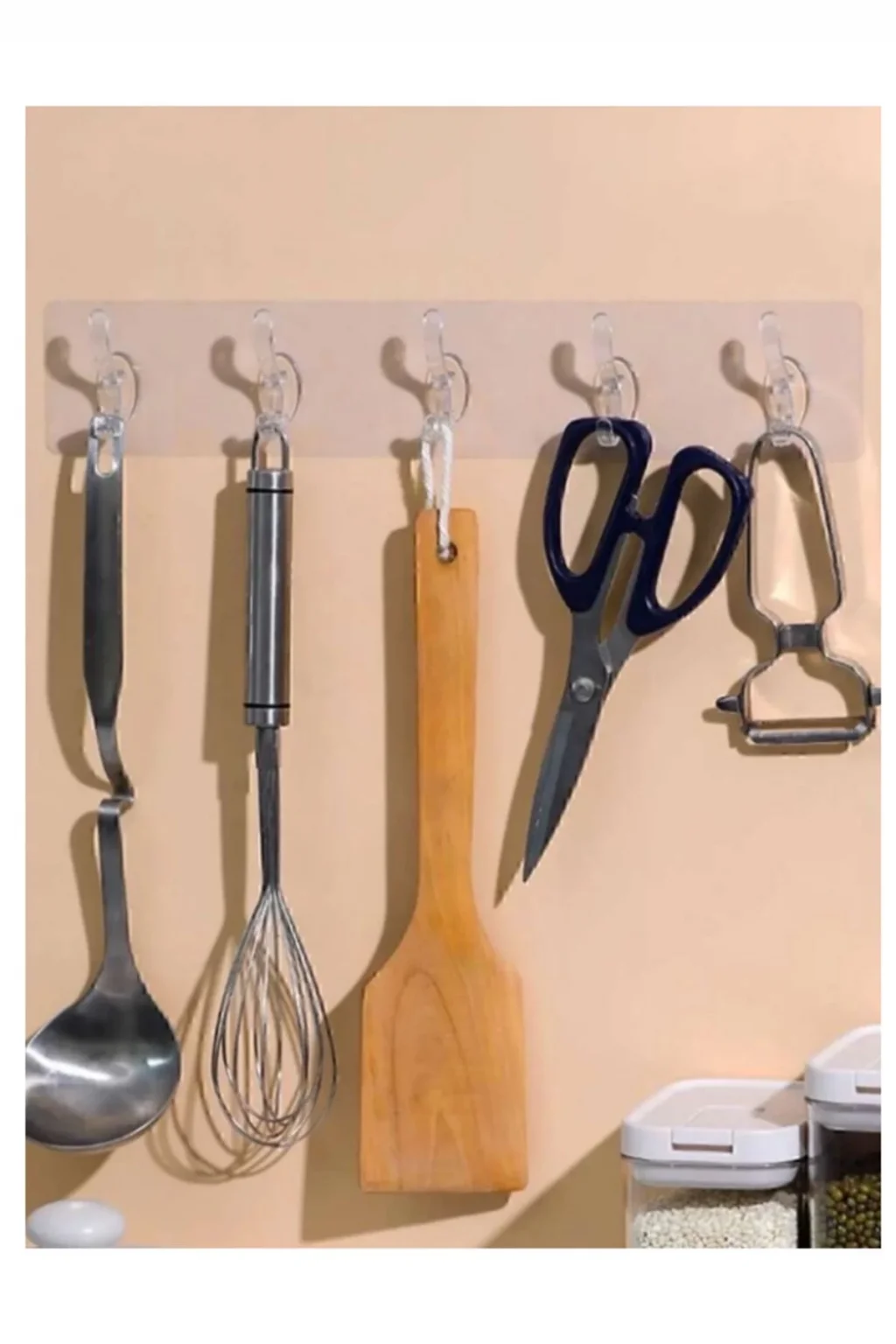 5'li kendinden yapışkanlı güçlü şeffaf askılık - Kapı arkası mutfak duvar banyo askı 5'li Güçlü Yapışkanlı Şeffaf Askılık Banyonuzda, mutfağınızda ve odanızda düzenleme sağlamanızı sağlayacak şık ve pratik bir ürün. Güçlü yapışkanlı askıya her türlü eşyanızı kolayca asabilirsiniz. Dayanıklı plastik malzemesi ile uzun süre kullanıma uygundur. Kaliteli plastik malzemeden üretilmiştir. Arkasında bulunan yapışkanı ile kolayca yapıştırabilirsiniz. Ürün Boyutları: 3 cm x 29 cm x 6 cm.