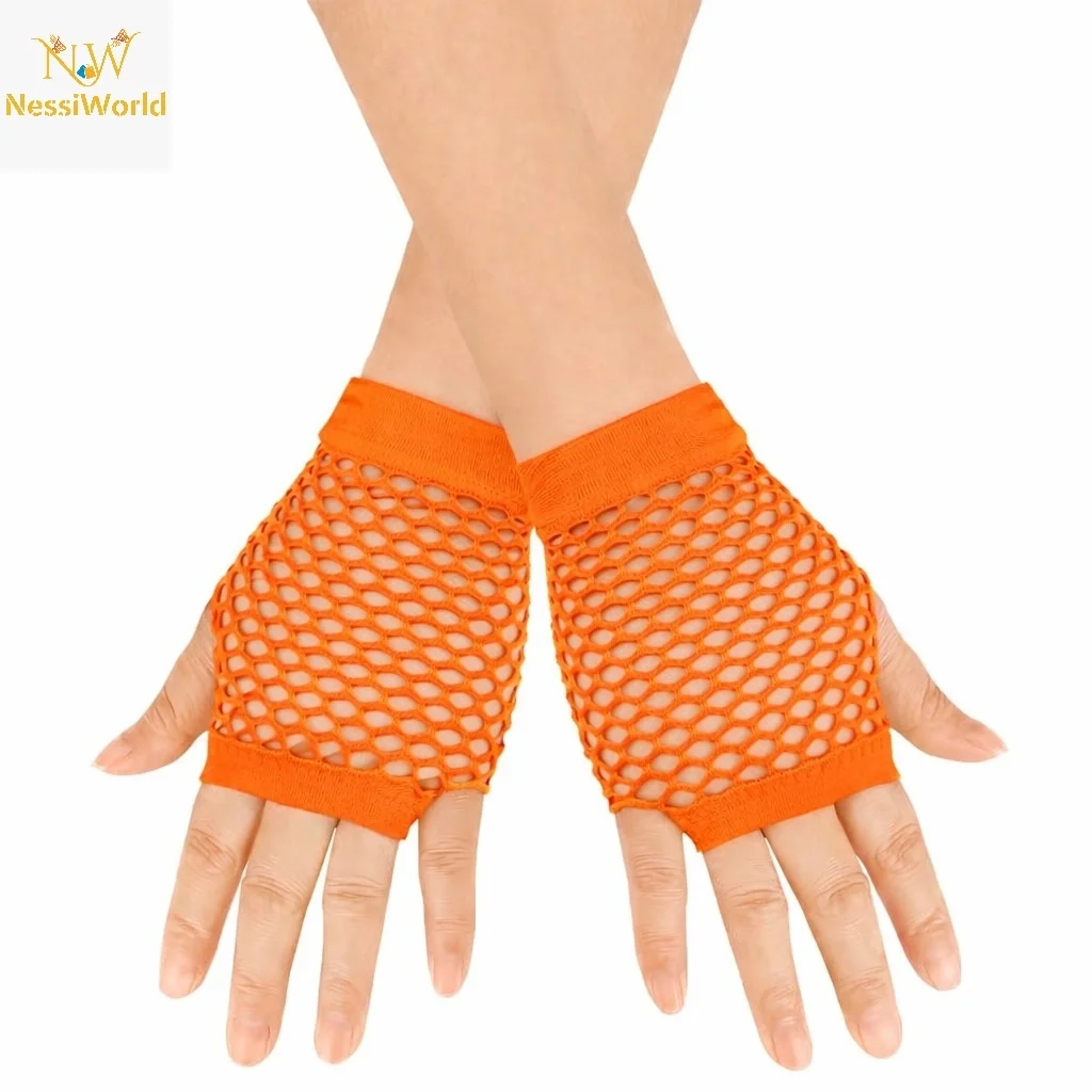 80’ler 90’lar Retro Neon Turuncu File Parmaksız Kısa Eldiven 11 cm