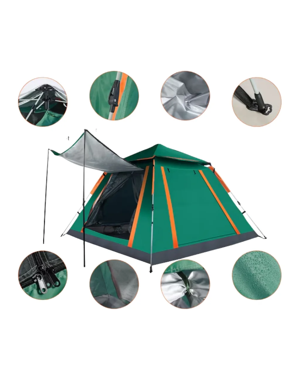 Doğada geniş ve konforlu bir alan sunan bu kamp çadırı, pratik kullanımı ve dayanıklı yapısı ile dikkat çeker. Geniş iç hacmi sayesinde birden fazla kişinin rahatlıkla konaklayabileceği bir alan sunar.Güneşlikli tasarımı sayesinde dış mekanda ekstra alan sağlar. Otomatik kurulum sistemi sayesinde kolay kullanım sunar.Su geçirmez yapısı sayesinde yağmur ve nemden korur. Hava sirkülasyonu sağlayan yapısı ile ferah bir ortam sunar.Taşınabilir yapısı sayesinde her yere kolayca götürülebilir.