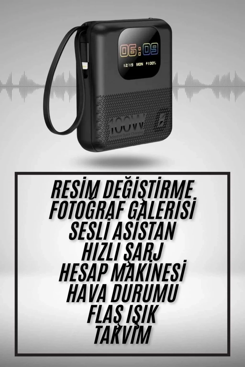 Çift Fonksiyon: Hem akıllı saat hem de taşınabilir powerbank olarak kullanılabilir, böylece acil durumlarda cihazlarınızı şarj edebilirsiniz.Sağlık Takibi: Adım sayar, kalp atış hızı monitörü ve uyku takibi gibi sağlık izleme özellikleri sayesinde sağlığınızı sürekli kontrol altında tutabilirsiniz.Bildirimler: Telefonunuza gelen çağrıları, mesajları ve diğer bildirimleri doğrudan bileğinizden takip edebilirsiniz.Su Geçirmezlik: Suya dayanıklı yapısı ile günlük aktivitelerinizde endişe etmeden kullanabilirsiniz.Uzun Pil Ömrü: Güçlü bataryası sayesinde uzun süreli kullanım sunar.Çoklu Spor Modları: Farklı spor aktiviteleri için özel modlar ile spor yaparken performansınızı izleyebilirsiniz.Kolay Kullanım: Dokunmatik ekranı ve kullanıcı dostu arayüzü ile rahat bir kullanım deneyimi sunar.Bağlantı Özellikleri: Bluetooth ve Wi-Fi bağlantı seçenekleriyle diğer cihazlarınızla kolayca senkronize olur.Geniş Ekran: Net ve geniş ekranı sayesinde tüm bilgileri rahatlıkla görüntüleyebilirsiniz.Dayanıklı Malzeme: Yüksek kaliteli ve dayanıklı malzemelerden üretilmiştir, uzun ömürlü kullanım sağlar.