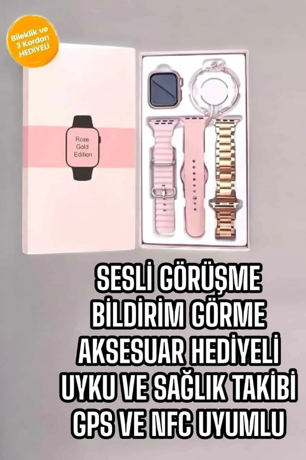Akıllı Saat Amoled Ekran 3 Kordonlu Aksesuar Hediyeli Sesli Görüşme