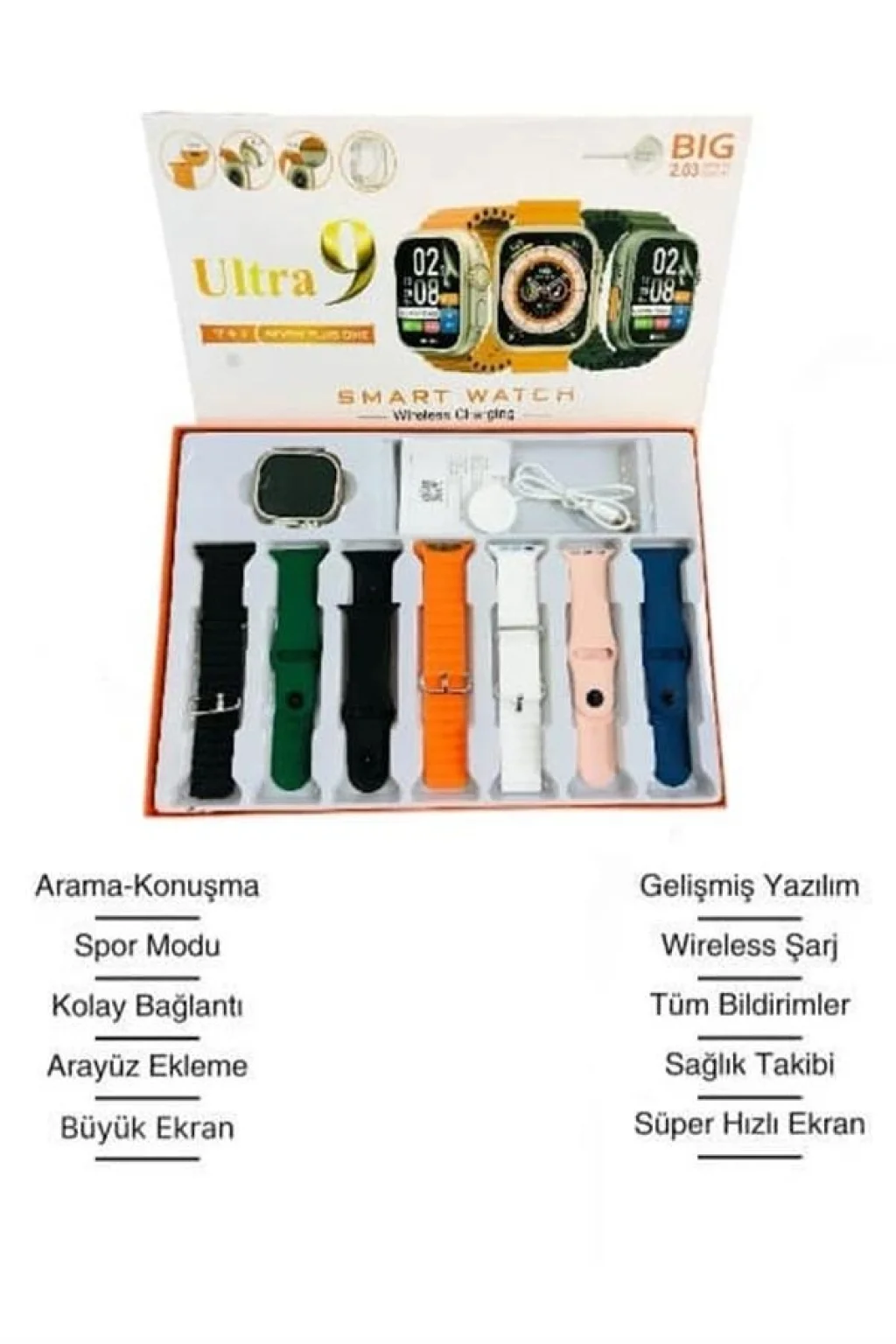 Geniş ve Net Görüntü: 2.09 inç HD IPS ekranıyla canlı ve net bir görüntü deneyimi sunar. Kare tasarımı ve tam uyumlu dokunmatik ekranı sayesinde kullanım kolaylığı sağlar.Bağlantı ve Kullanım Kolaylığı: Android ve iOS cihazlarla tam uyumlu çalışan bu saat, çağrı almayı, bırakmayı ve arama yapmayı pratik hale getirir. Bildirimlerinizi doğrudan kontrol eder ve telefona ihtiyaç duymadan işlemleri gerçekleştirebilirsiniz.Sağlık Takibi ve Spor Modları: Uyku izleme, kalori takibi, kalp atış hızı, kan basıncı ölçme gibi sağlık özellikleriyle günlük yaşamınızda size destek olur. Çoklu spor modu sayesinde egzersizlerinizi detaylı bir şekilde takip edebilirsiniz.Dayanıklı Tasarım: Toz ve suya dayanıklılığı sayesinde her türlü hava koşulunda güvenle kullanılabilir. Modern, sportif ve klasik tasarımları bir araya getiren 7 farklı kordon seçeneğiyle tarzınıza uyum sağlar.Güçlü Batarya ve Ek Özellikler: Yüksek kapasiteli polimer pili ile uzun kullanım süresi sunar. Bluetooth araması, uzaktan müzik ve fotoğraf kontrolü, saat, hava durumu, telefon bulma, kronometre gibi ek özelliklerle hayatınızı kolaylaştırır.