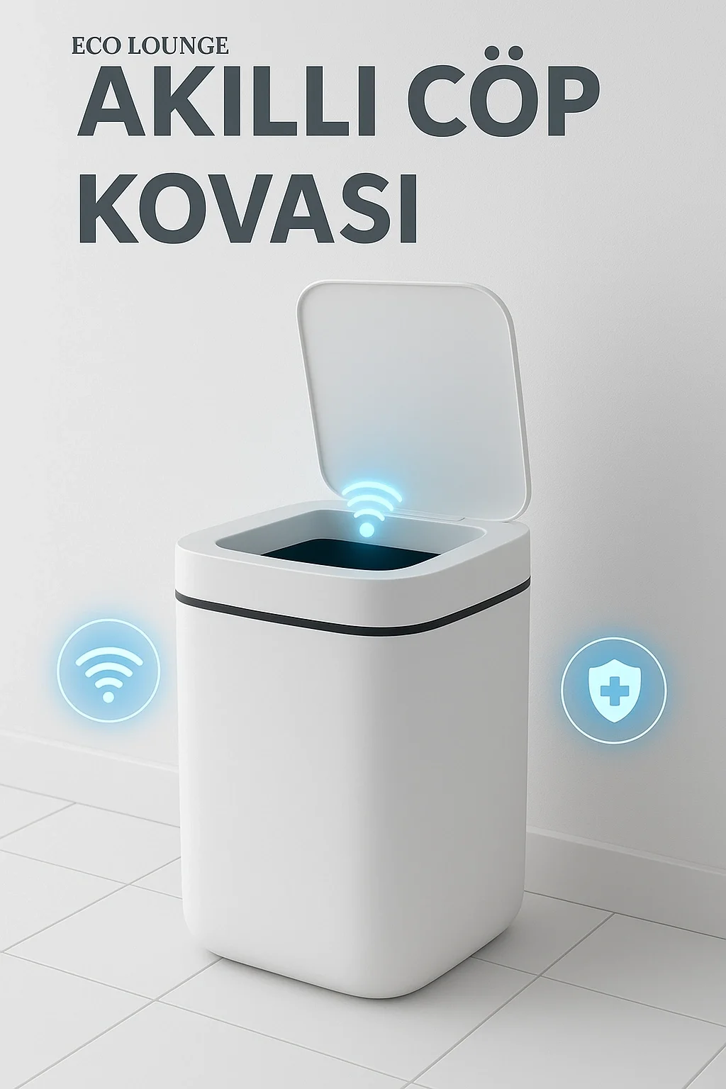 Akıllı Sensörlü Antibakteriyel Çöp Kovası 20 Litre Çöp Kutusu, Çöp Torbası Uyumlu Kapak