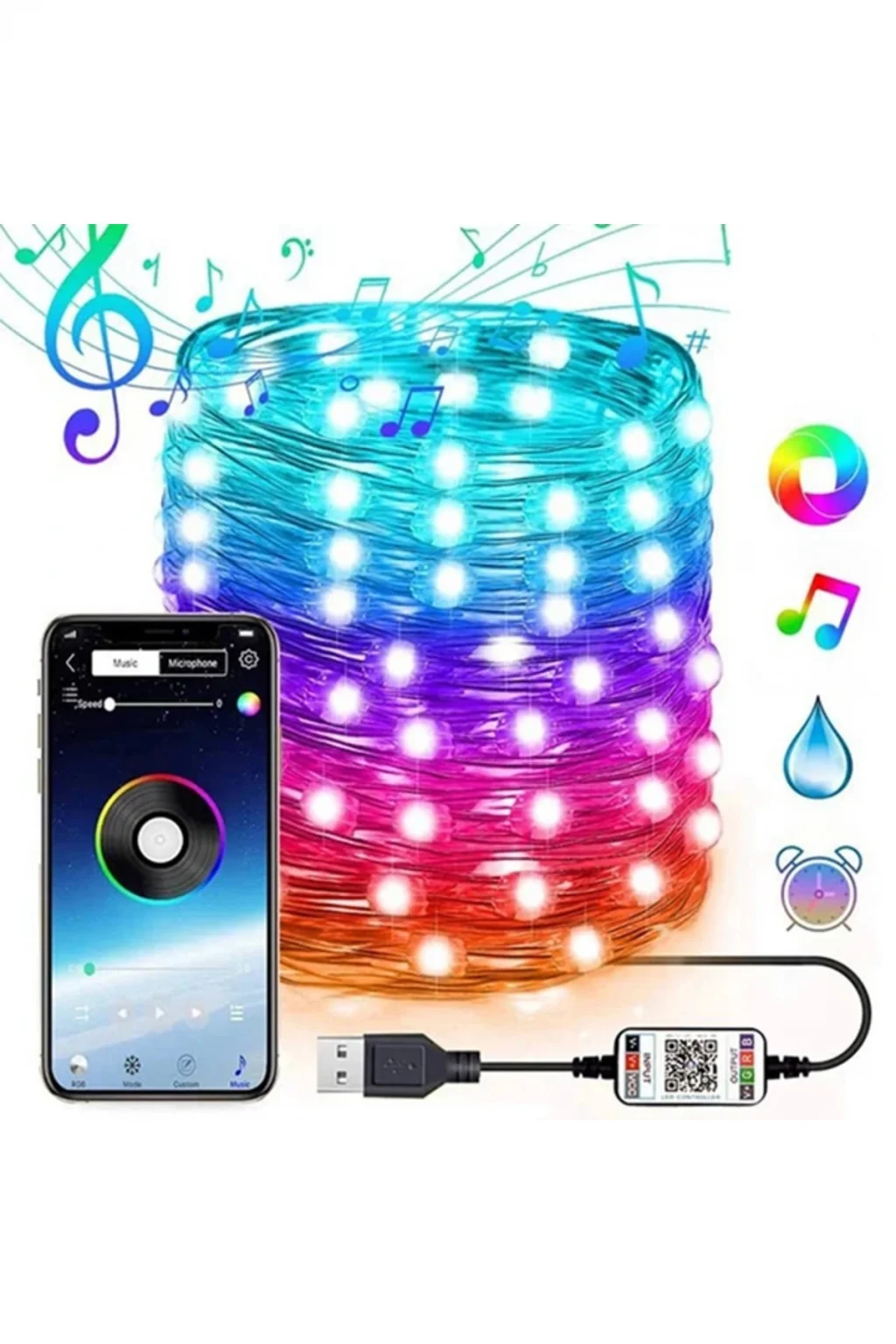ALLY 5MT 50 LED RGB Bluetooth Telefonla Kontrol Edilen Usb Led Lamba İos-Android