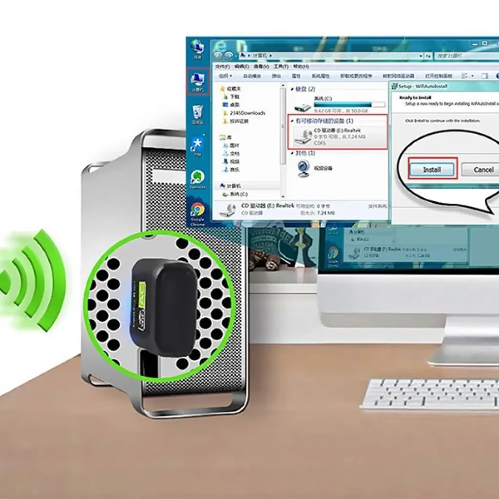 ALLY Çift Bant 600 Mbps 2.4 GHz +5 GHz USB Kablosuz Wifi Adaptör-(5775)
