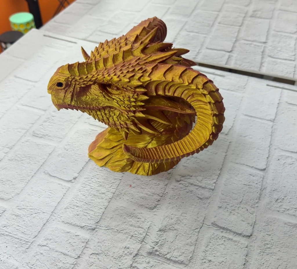 Bu gold–red ejderha heykeli, estetik görünümü ve detaylı oyma dokusuyla fantastik figür severlerin vazgeçilmezi olacak bir tasarımdır. Ejderhanın kabartmalı yüz hatları, boynuzlarının kıvrımı ve pul dokusunun belirginliği, heykelin 3 boyutlu etkisini kusursuz biçimde ortaya çıkarır. Metalik ışıltıya sahip kırmızı ve altın tonlar, ürüne hem sanatsal hem de koleksiyonluk bir değer kazandırır.Ejderha figürü; güç, koruyuculuk, bilgelik ve liderlik gibi anlamlar taşır. Bu nedenle çalışma masasından oyun odasına, stüdyodan ofis köşesine kadar pek çok alanda güçlü bir dekor etkisi yaratır. Heykel, sert ve detaylı yapısıyla koleksiyon raflarında sergilendiğinde ortamın karakterini tamamen değiştirir ve dekorasyona fantastik bir boyut katar.Hediyelik olarak da oldukça özel bir ürün olan bu model, özellikle mitolojiye, ejderha temalı aksesuarlara ve fantastik evrenlere ilgi duyan kişiler için kusursuz bir armağandır. Uzun süre dayanıklı yapısıyla yıllarca dekoratif bir obje olarak kullanılabilir. Göz alıcı rengi ve ihtişamlı duruşu, ev ve ofis dekorasyonunun her alanında güçlü bir imza bırakır.