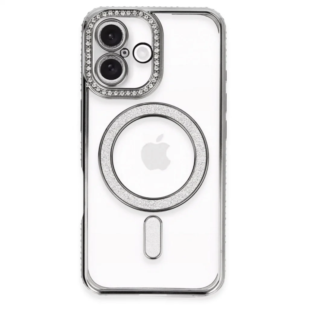 Apple İphone 16 Plus Kılıf Joke Simli Magneticsafe Kılıf - Gri