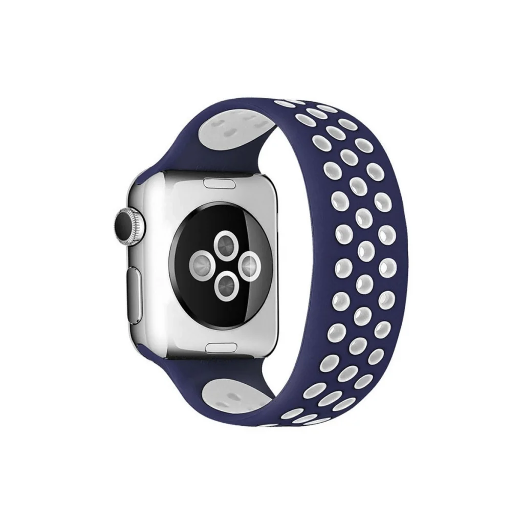 Apple Watch 38mm Ayarlı Delikli Silikon Kordon - Lacivert-beyaz
