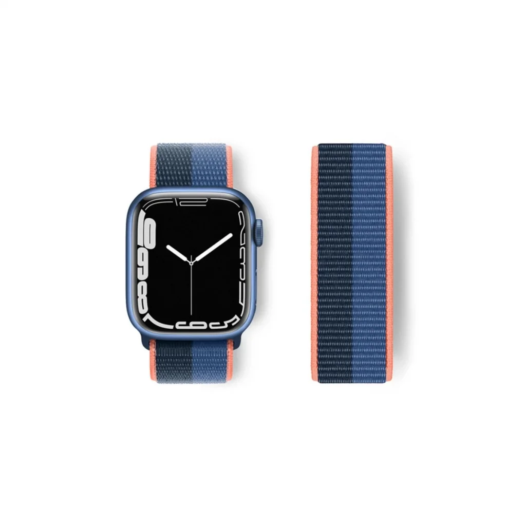 Apple Watch 38mm Hasırlı Cırtcırtlı Kordon - Siyah-mavi
