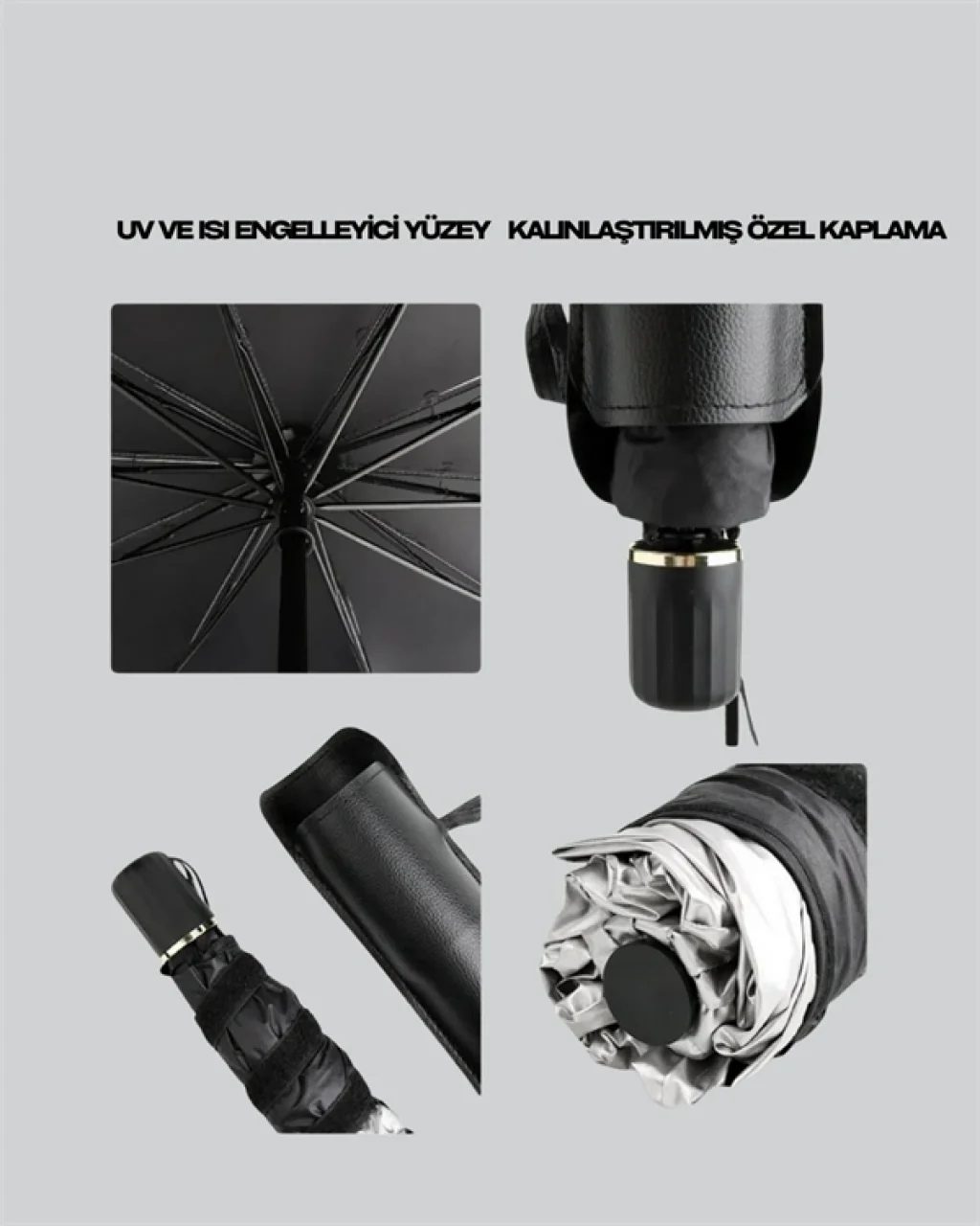 Yaz aylarında güneşin doğrudan aracınıza vurması yalnızca iç mekân sıcaklığını artırmakla kalmaz, aynı zamanda direksiyon, koltuklar, ekranlar ve torpido gibi parçaların zamanla solmasına, çatlamasına ya da zarar görmesine neden olabilir. Tüm bu sorunlara karşı etkili bir çözüm sunan bu katlanabilir ön cam güneşliği, araç sahiplerinin en büyük yardımcısı olmaya aday.Kalınlaştırılmış ve özel kaplamalı kumaşı sayesinde, yüksek ısıyı ve zararlı UV ışınlarını araç içine geçirmeden yansıtır. Böylece araç içi sıcaklık ciddi şekilde düşer; koltuklara, direksiyona ve elektronik aksama zarar gelmez. Kumaş yüzeyi solmaya dayanıklıdır, uzun süreli kullanımda dahi ilk günkü performansını korur.Güçlü cam elyaf iskeleti, güneşliğin sağlam ve dengeli durmasını sağlar. Kolay deforme olmayan bu yapı sayesinde ürün yıllar boyu güvenle kullanılabilir. Güneşlik, 360° dönebilen esnek şemsiye sapı ile farklı açılara uyum sağlar, böylece tüm ön camı boşluksuz şekilde kaplayarak tam koruma sunar.Kullanımı son derece pratik: Herhangi bir kurulum gerekmeden saniyeler içinde açılıp kapanabilir. Kullanmadığınızda kolayca katlanarak minimal yer kaplar; torpido gözüne, koltuk altına veya kapı ceplerine rahatça yerleştirilebilir. İki farklı boy seçeneği sayesinde sedan, SUV ve hafif ticari araçlarla uyumludur.Sadece yaz sıcağından değil, zararlı güneş ışınlarının uzun vadede oluşturduğu hasarlardan da korunmak için tercih edebileceğiniz bu ön cam güneşliği, araç içi konforu ve güvenliği bir üst seviyeye taşır.
