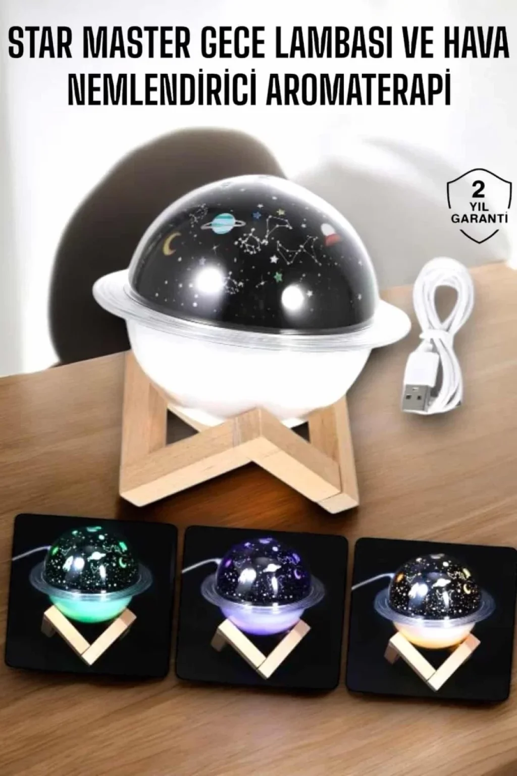 USB Projeksiyon Gece Lambası ve Hava Nemlendirici – Aromaterapi Destekli Taşınabilir Mini