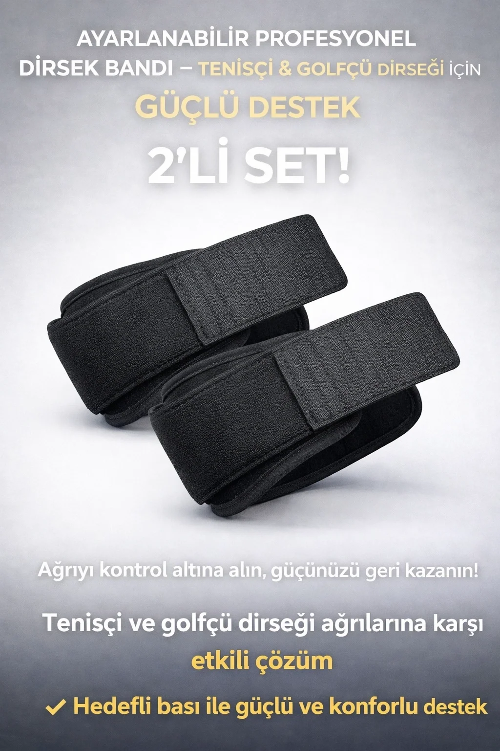 Ayarlanabilir Profesyonel Dirsek Bandı 2’li Set – Tenisçi & Golfçü Dirseği İçin Güçlü Destek