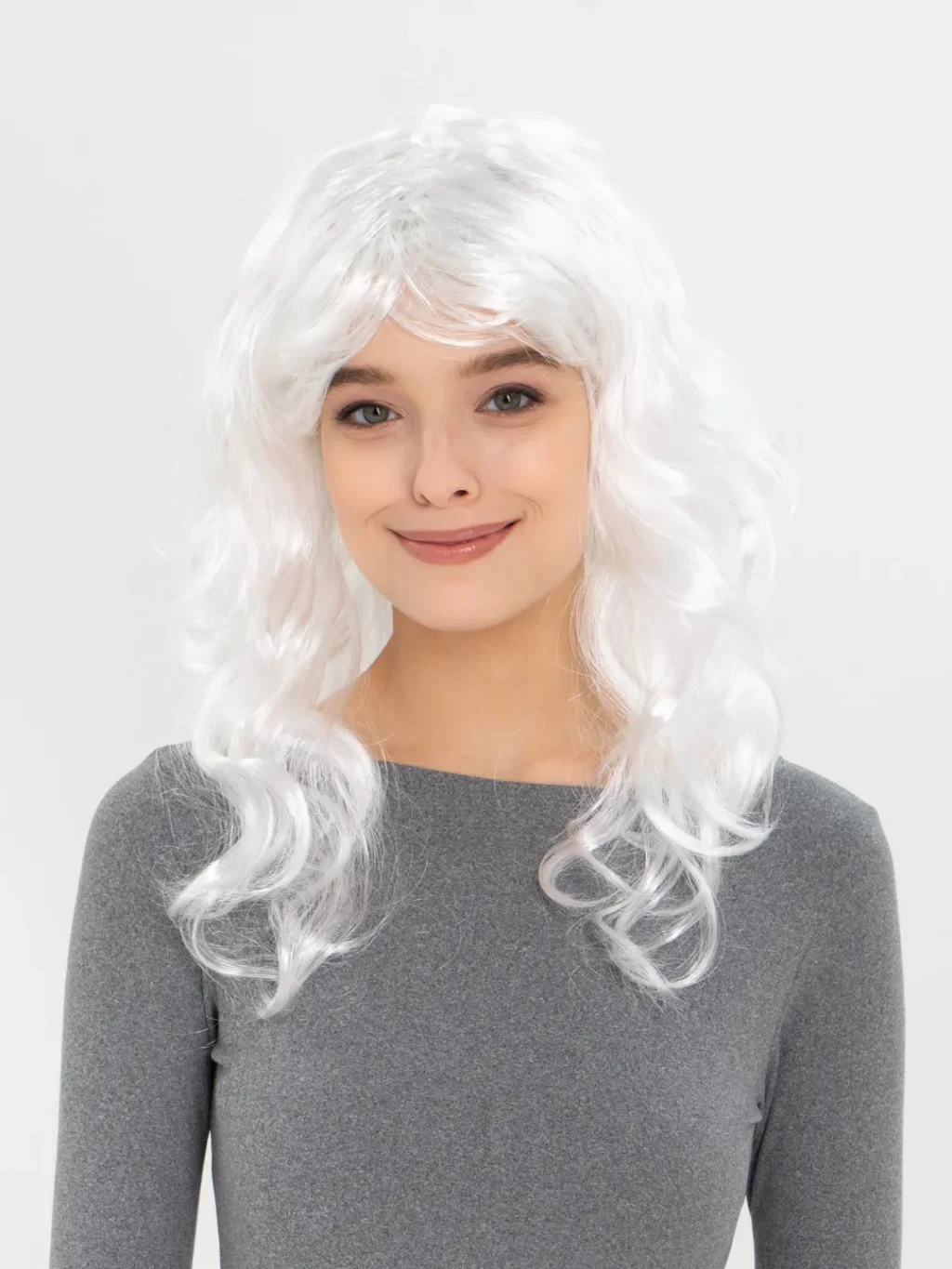 Beyaz Renk Kahküllü Dalgalı Uzun Parti Peruğu
