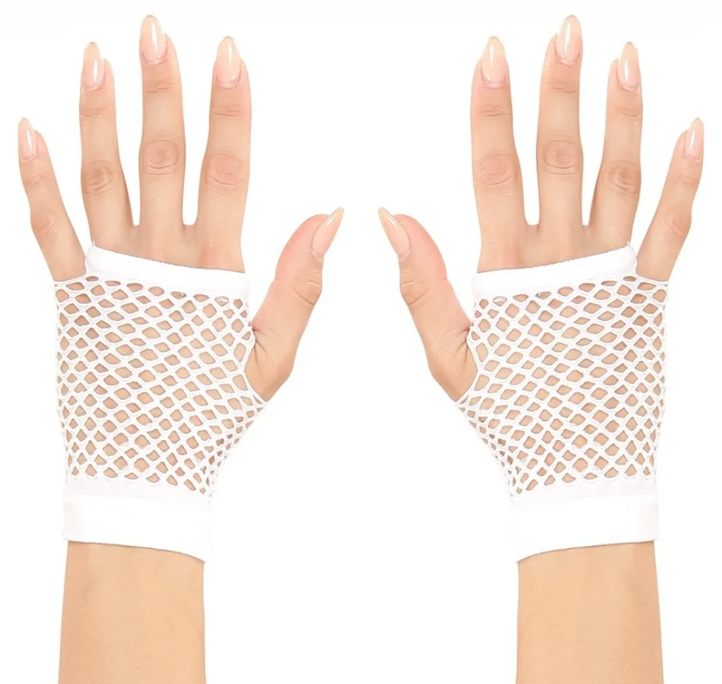 Karnaval ve cadılar bayramı kostümünüze bir dokunuş katacak kısa beyaz örgü eldivenler | Görünümünüzü bu 11 cm beyaz örgü eldivenlerle tamamlayın