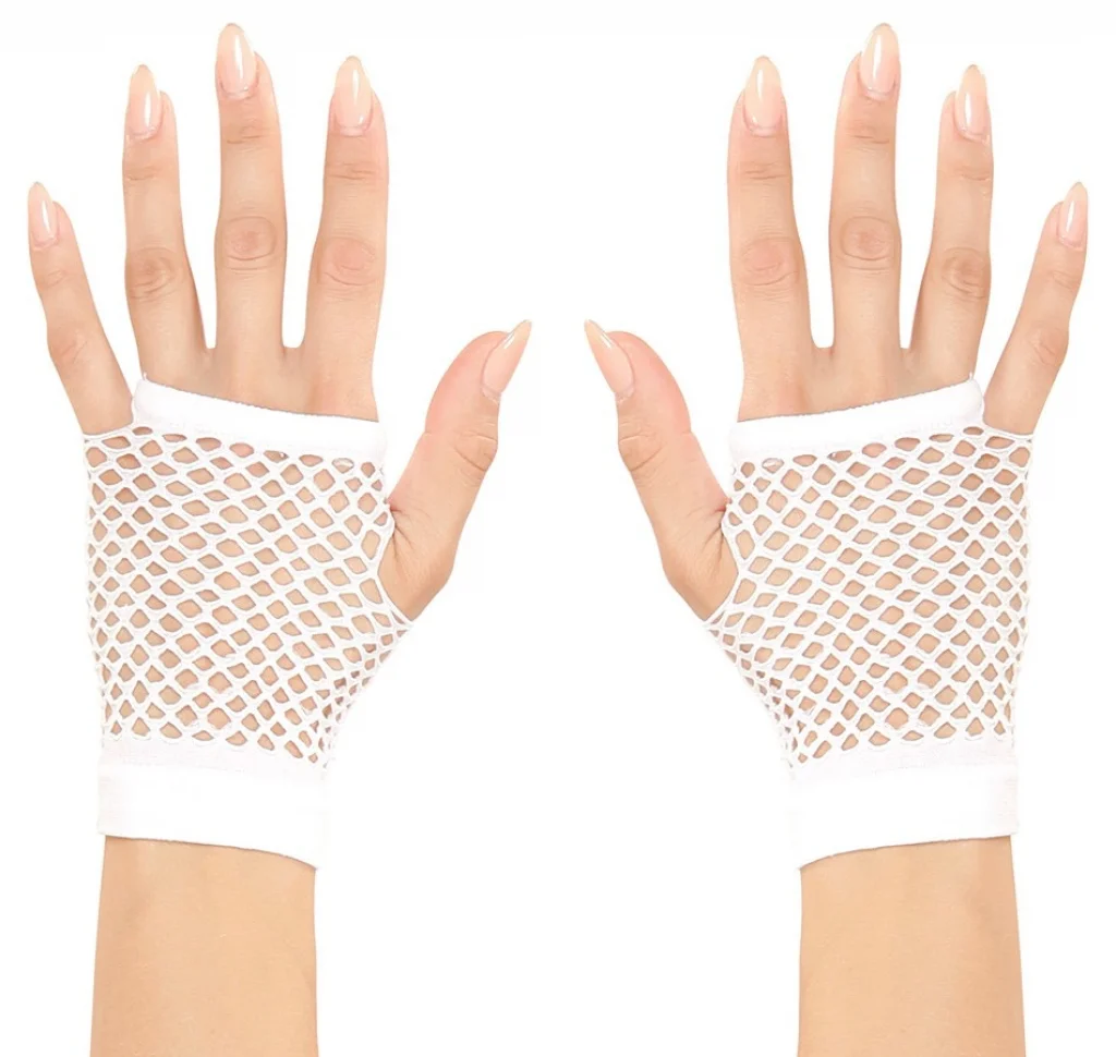Beyaz Renk Kısa Boy Fileli Örgü Eldiven