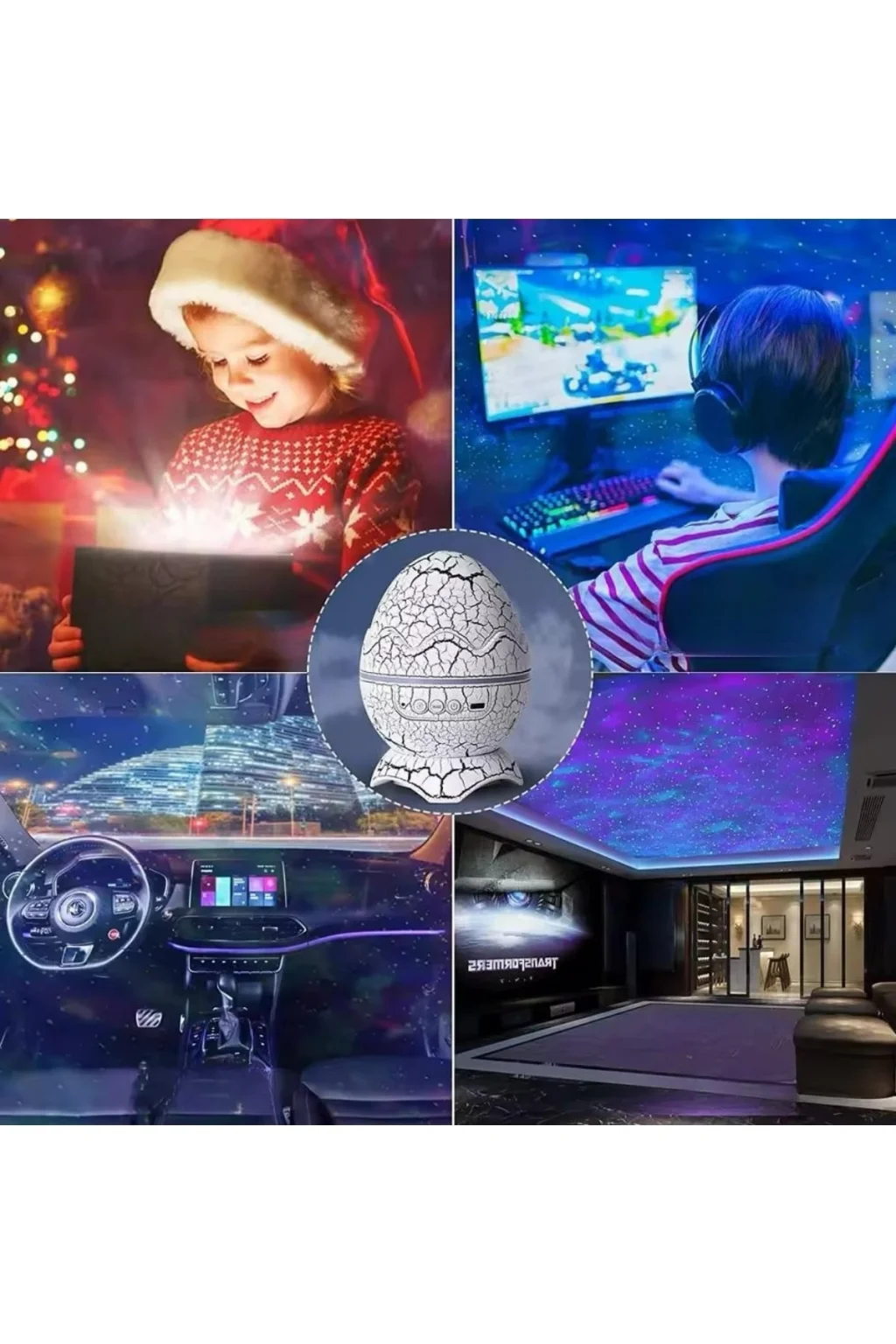 Dinazor Yumurtası tasarımıyla dikkat çeken bu ışık projektörü, sadece çocuklar için değil, oturma odasında da şık bir aksesuar olarak kullanılabilir. Farklı ortamlarda rahatlıkla kullanılabilecek bir atmosfer yaratmak için ideal bir üründür. İster romantik bir akşam, ister parti, ister çocuklarla oyun oynarken ya da film izlerken, her anı daha özel hale getirebilir. 5W enerji tüketimi ve düşük güç gereksinimi ile uzun süreli kullanım sağlar. Ayrıca, USB kablosu ile çalıştığından, çeşitli cihazlara bağlanabilir. Sürdürülebilir malzemelerle üretilmiş olan bu ürün, dayanıklılığı ve kaliteli yapısıyla uzun süreli kullanım sunar.