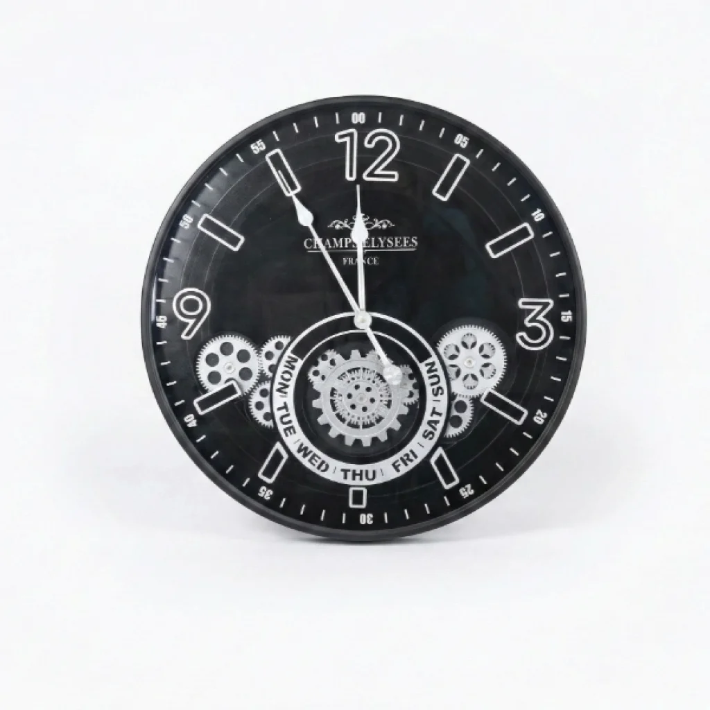 Çarklı Duvar Saati Gümüş Detaylı 59 cm