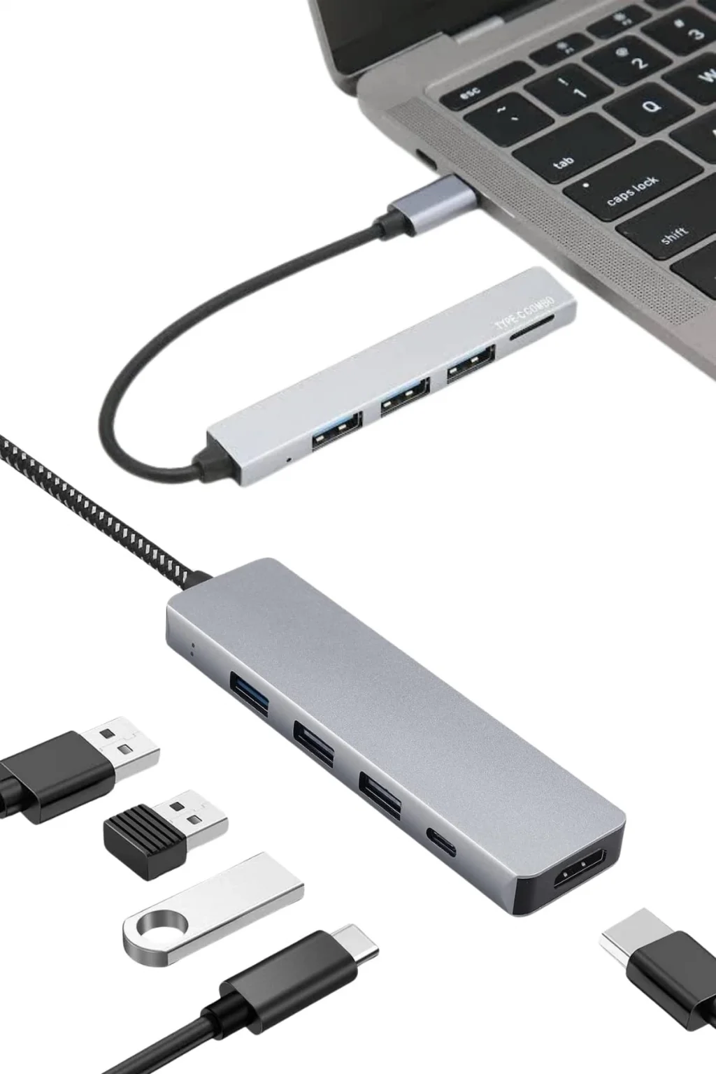 Type C Hub Çoklayıcı 8 Port USB HDMI RJ45 Kart Okuyucu